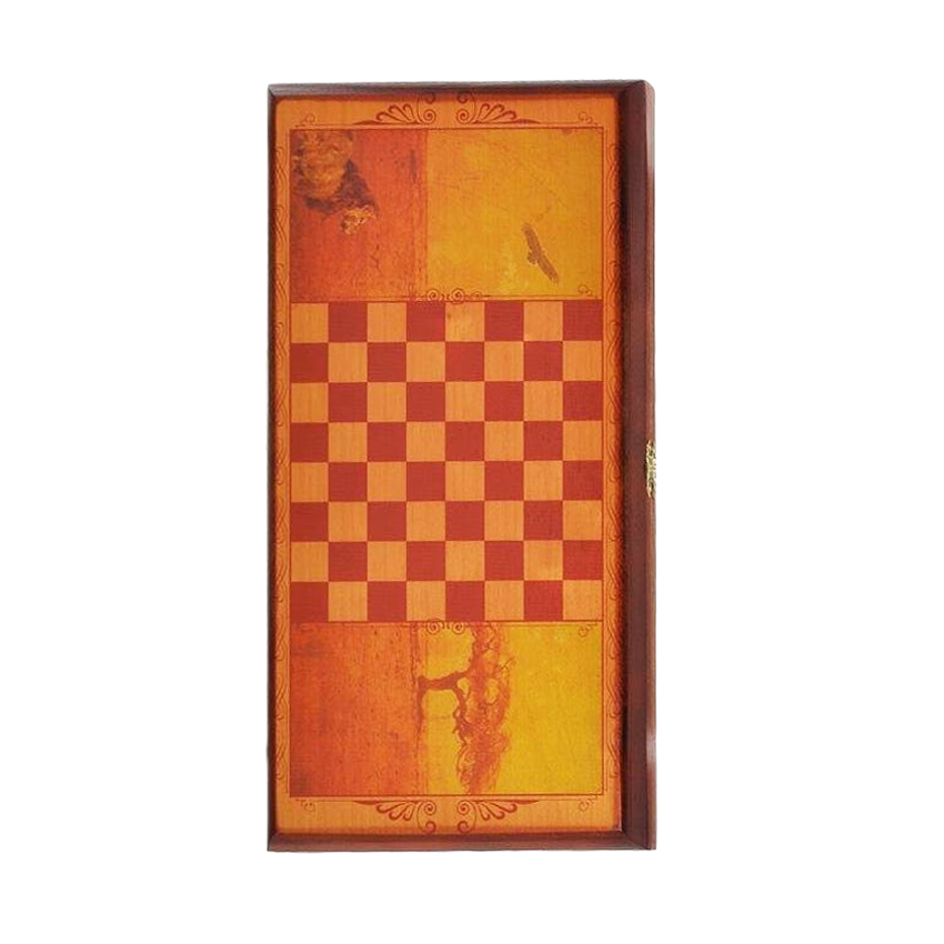 На внешней стороне нанесено поле для игры в шашки или шахматы.