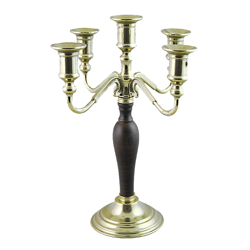 Канделябр на 5 свечей с деревянной вставкой на основании (цвет: золото)