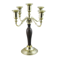 Канделябр на 5 свечей с деревянной вставкой на основании, золото