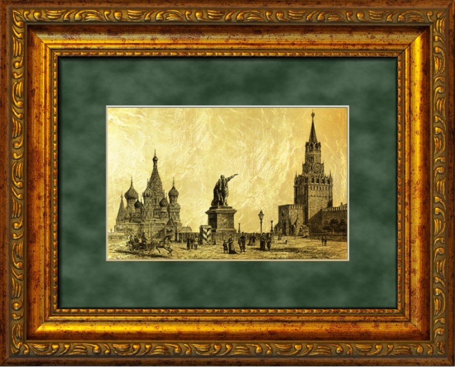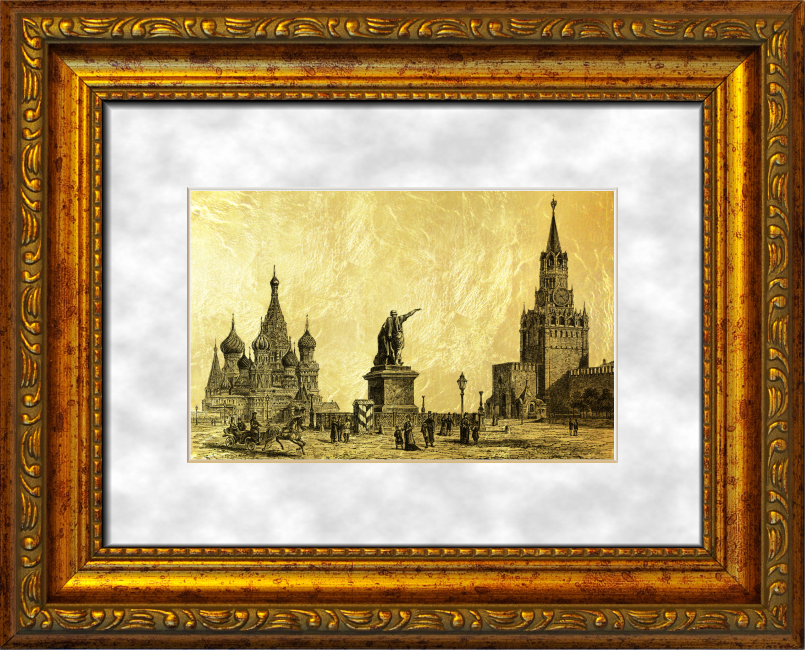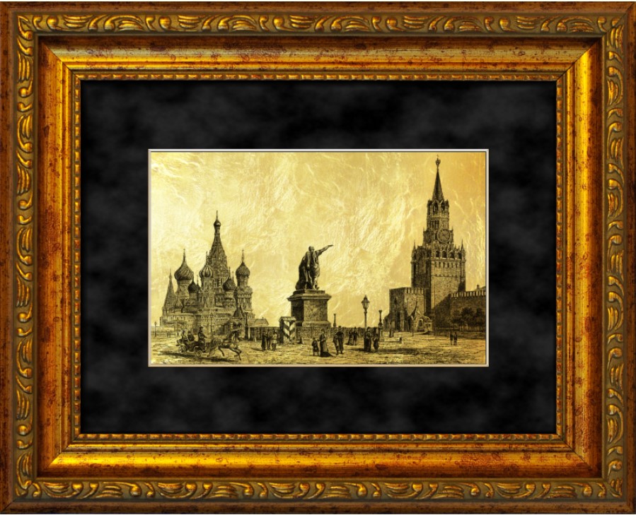 Как выглядит Красная площадь, знает каждый житель нашей страны. Она запечатлена на многих живописных полотнах и рисунках. Мы предлагаем Вашему вниманию золотую картину с красивым и не совсем обычным видом Красной площади. Именно так она выглядела два века назад. Время летит, столетия сменяют друг друга, но Красная площадь остается все такой же величественной и прекрасной. Такой подарок обязательно понравится не только любителям истории, но и всем гостям нашей столицы, и долгие годы будет напоминать им о Москве и москвичах. Эта картина на сусальном золоте высшей пробы с успехом украсит и рабочий кабинет, и гостиную.