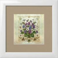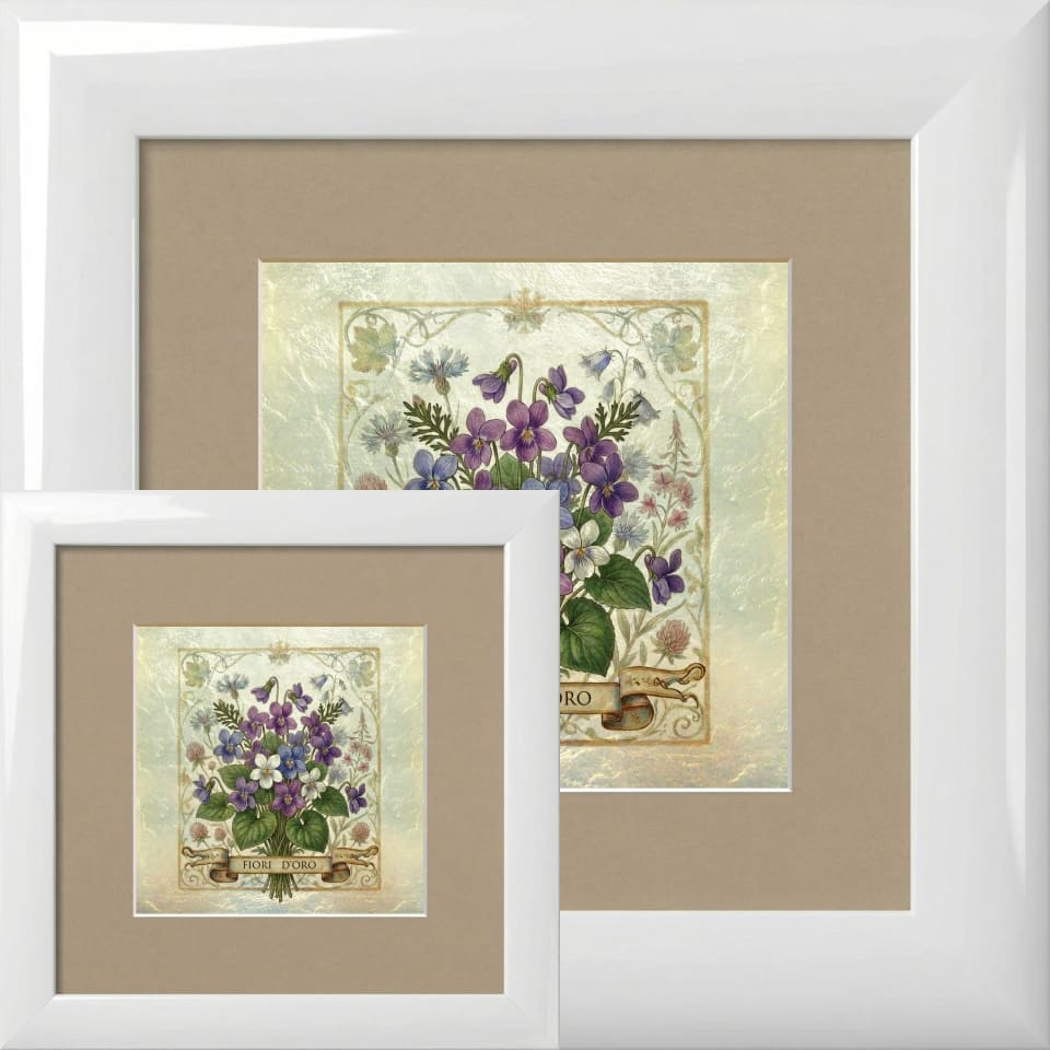 Картина на белом сусальном золоте «Фиалки» размером 84х84 мм (по золоту)