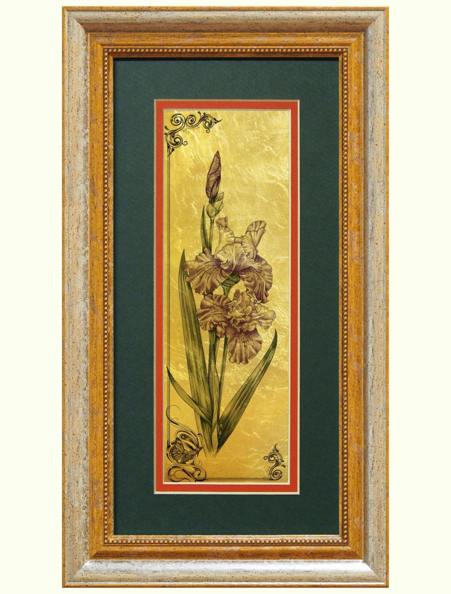 Картина на сусальном золоте «Ирисы»