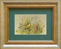Картина на сусальном золоте «Птички в полевых цветах» размером 80х125 мм (по золоту)