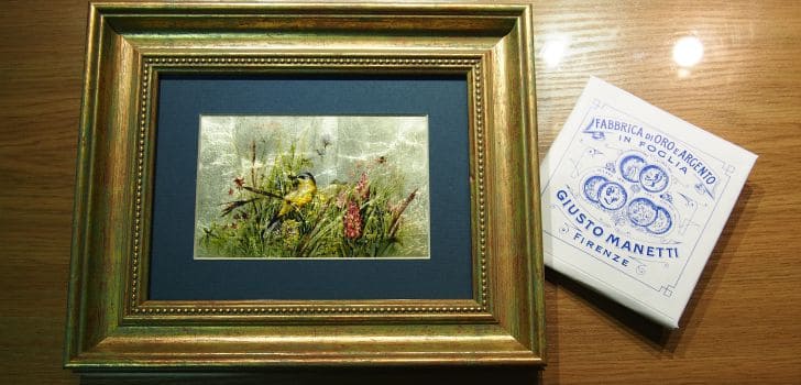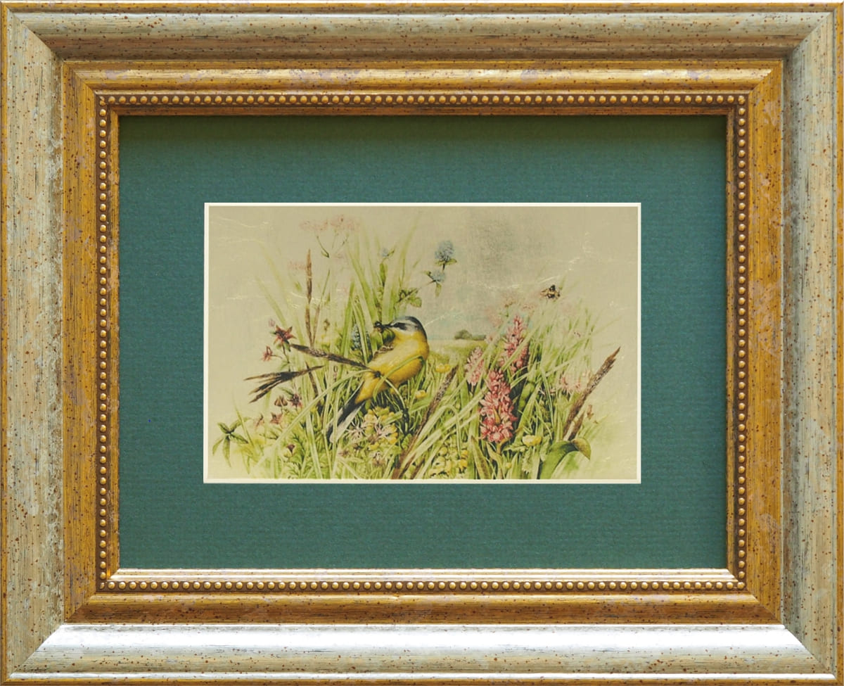 Картина на сусальном золоте «Птички в полевых цветах»