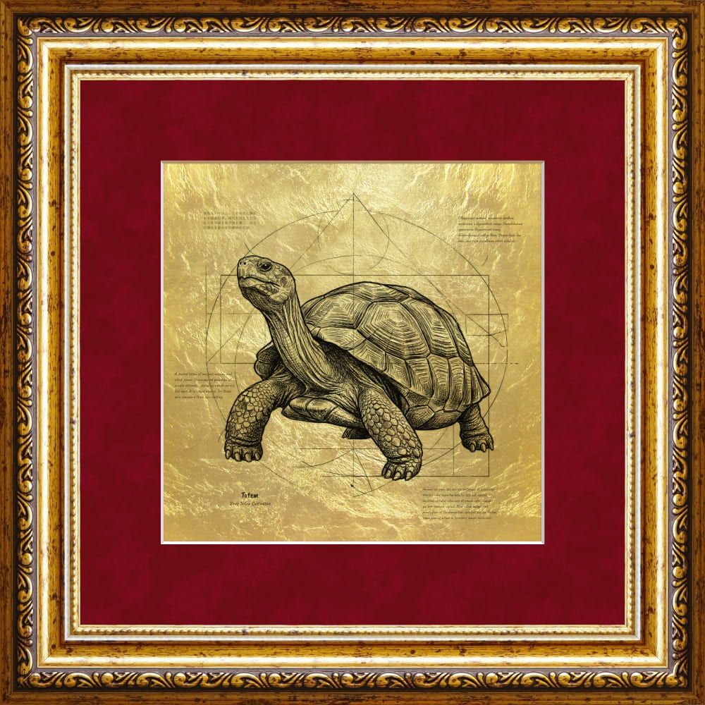 Перед вами эксклюзивная картина «Черепаха - Тотем», выполненная вручную на полотне из настоящего сусального золота 23 карата.