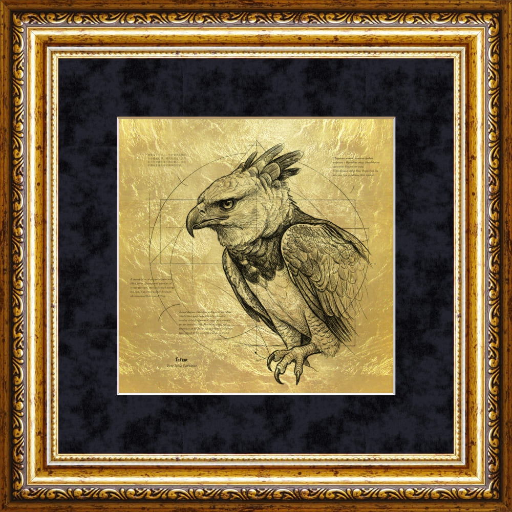 Перед вами эксклюзивная картина «Гарпия - Тотем», выполненная вручную на полотне из настоящего сусального золота 23 карата.