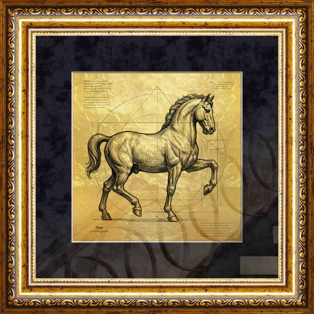 Перед вами эксклюзивная картина «Конь Возрождения - Тотем», выполненная вручную на полотне из настоящего сусального золота 23 карата.