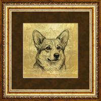 Картина на сусальном золоте «Корги» размером 150х150 мм (по золоту)