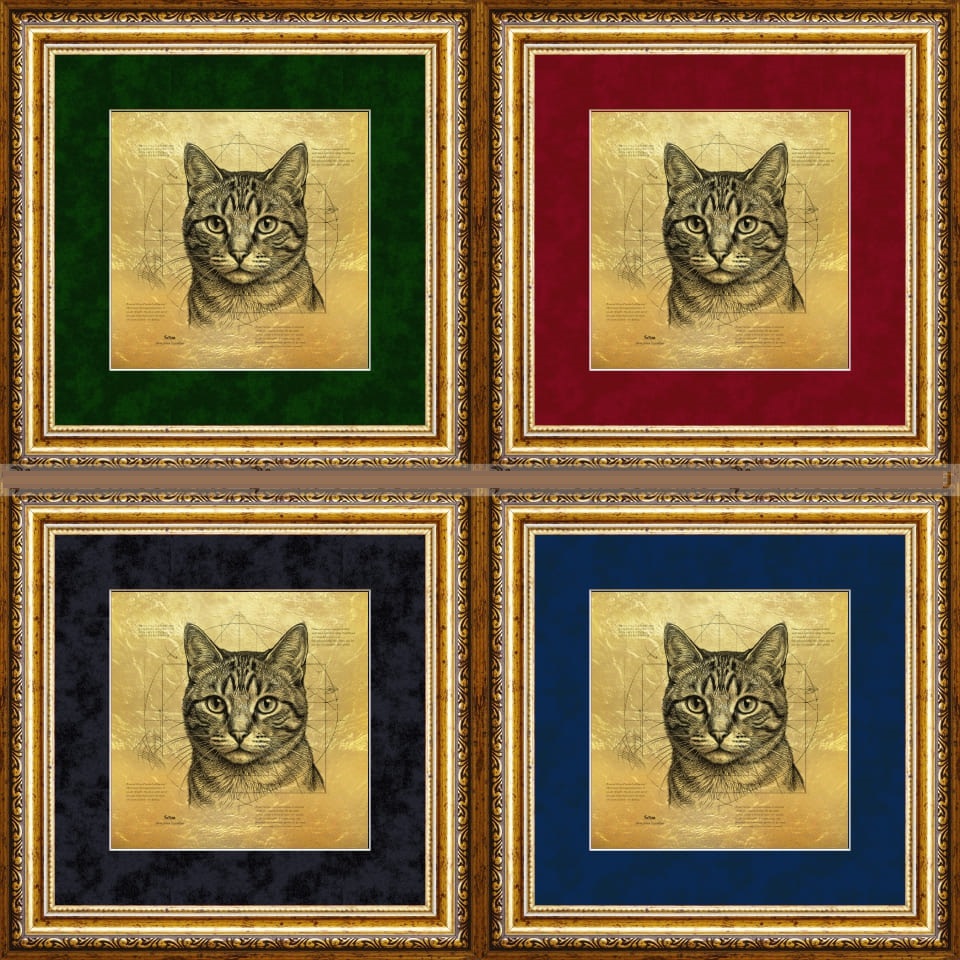 Ювелирная точность графики и тонкие геометрические линии чертежа на заднем плане эффектно контрастируют с глубоким темным бархатным паспарту и классическим золоченым багетом. Кошка издревле почитается как символ независимости, интуиции и надежной защиты домашнего очага, а формат «тотема» превращает эту работу в мощный персональный оберег. Эта авторская работа на золоте 960 пробы подчеркнёт ваш безупречный вкус и станет подарком, который наполнит дом атмосферой тепла. Изделие официально сертифицировано.