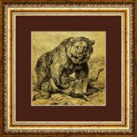 Картина на сусальном золоте «Медведь с добычей» размером 280х280 мм (по золоту)