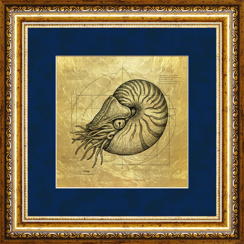 Перед вами эксклюзивная картина «Наутилус - Тотем», выполненная вручную на полотне из настоящего сусального золота 23 карата.