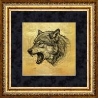 Картина на сусальном золоте «Волк» размером 150х150 мм (по золоту)