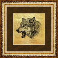 Картина на сусальном золоте «Волк» размером 180х180 мм (по золоту)