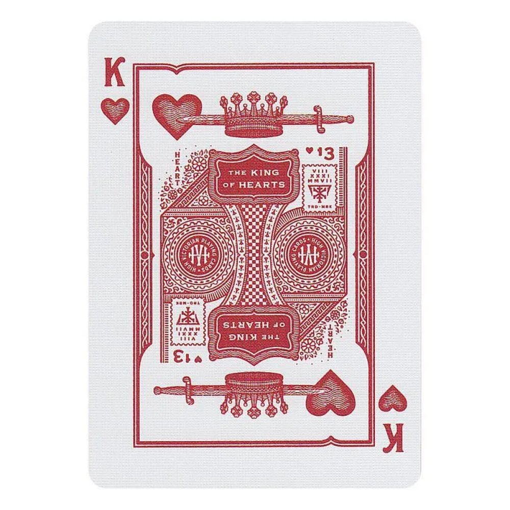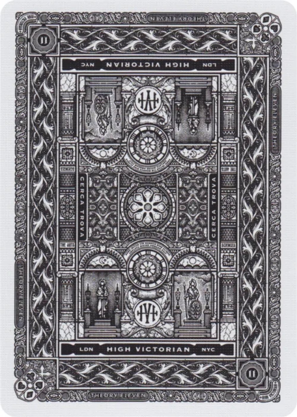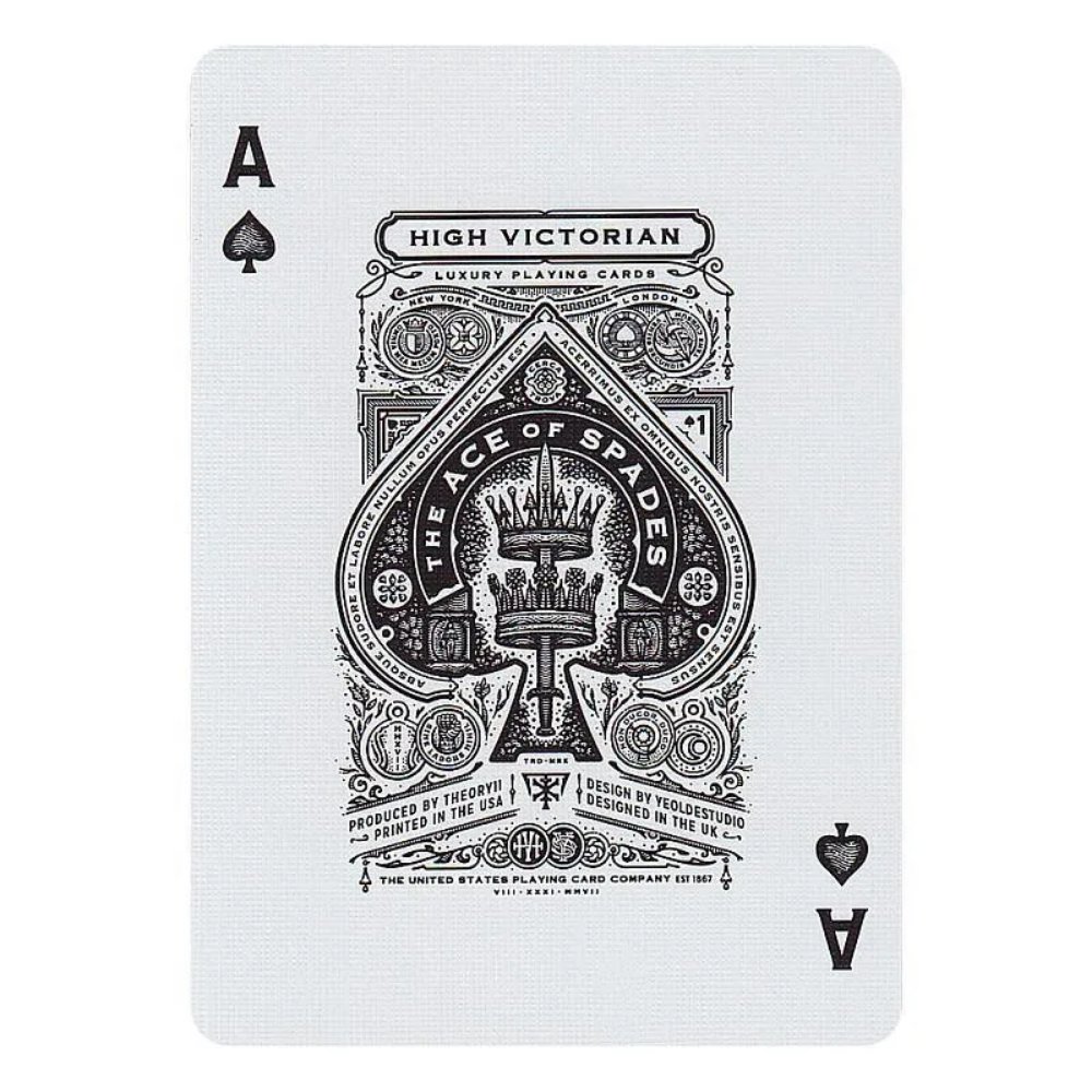 Дизайнерская карточная колода High Victorian выполнена в очень интересной стилистике, что становится видно уже по коробке. К тому же они достаточно прочные и долговечные, чтобы выдержать сотни партий в карты или показов фокусов. Производитель выполнил лицевую сторону каждой карты высшего номинала в собственном дизайне, который выгодно отличается от всех существующих на рынке. Рубашка напоминает интересно украшенную фреску викторианской эпохи, когда люди умели ценить красоту даже мелких элементов.