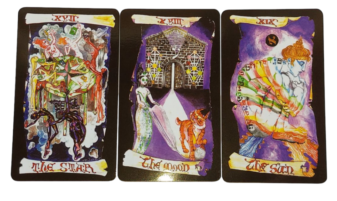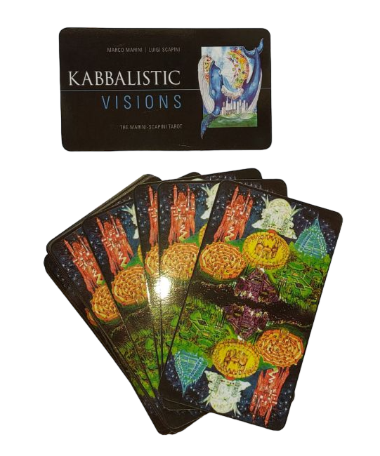 «Kabbalistic Visions» - колода карт Таро, построенная на классической традиции Райдера-Уайта, но несущая в себе мудрость и мистическую ауру Каббалы - древнего еврейского учения. Используя Древо Жизни и 22 буквы еврейского алфавита, эта колода сможет раскрыть все потайные мотивы и желания, позволит заглянуть в самые потаенные уголки души человека и почерпнуть там ответы на самые сложные жизненные вопросы.