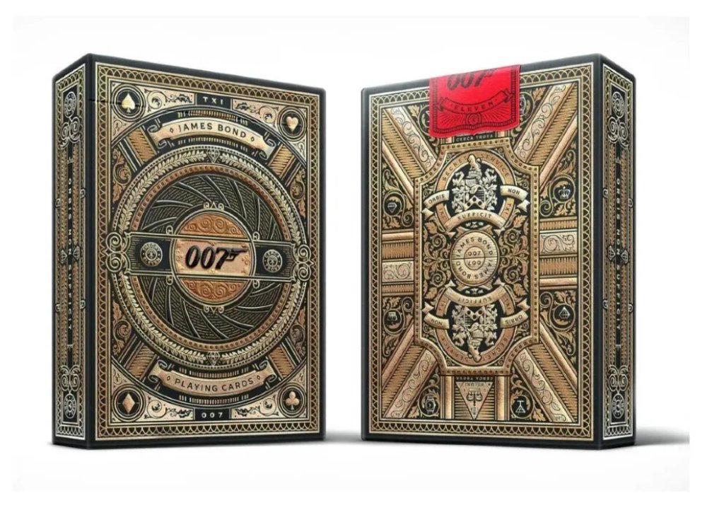 Theory11 James Bond playiing Cards 007 - колода карт для покера, тематика которой, как понятно из ее названия, посвящена Джеймсу Бонду. Премиальное качество колоды идеально сочетается с безупречным, продуманным до мельчайших деталей дизайном. И рубашка карт, их лицевые стороны наполнены символами, отсылающими к фильмам о легендарном секретном агенте. Тиснение золотой фольгой расставляет акценты в изображениях, делает их глубокими и многогранными. Новинка посвящена выходу двадцать пятому фильму о Бонде.