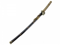 Катана - длинный японский меч. По форме клинка катана напоминает шашку, однако рукоять у неё прямая и длинная, что позволяет использовать двуручный хват. Навершие отсутствует. Небольшой изгиб клинка и острый конец позволяют наносить также и колющие удары. Длина клинка — от 2 до 2,5 сяку (60,6—75,7 см), общая длина с рукоятью — 85—105 см (обычно 90—100 см). Оружие с длиной клинка меньше 2 сяку считается вакидзаси, а больше 2,5 сяку — окатана (большая катана) или тати, но помимо размера тати традиционно имеет больший изгиб и другую отделку с креплением (Аси) к доспехам.