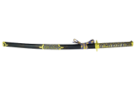 Катана с ножнами и рукоятью золотисто-синего цвета. На касире изображен воин, а на фути японские мотивы. Цуба с изображением японского дракона. Цука оклеена материалом, имитирующим кожу ската и обмотана цука-ито из хлопка. Лезвие изготовлено из нержавеющей стали марки 420С (25 HRC) с высокотехнологичной обработкой (полировкой) и не заточено. Деревянные лакированные ножны (сая) золотисто-синего цвета с сагео сине-желтого цвета. В центре ножн металлическая вставка с драконами и плетением. Металлические кодзири и коигути также украшены драконами.