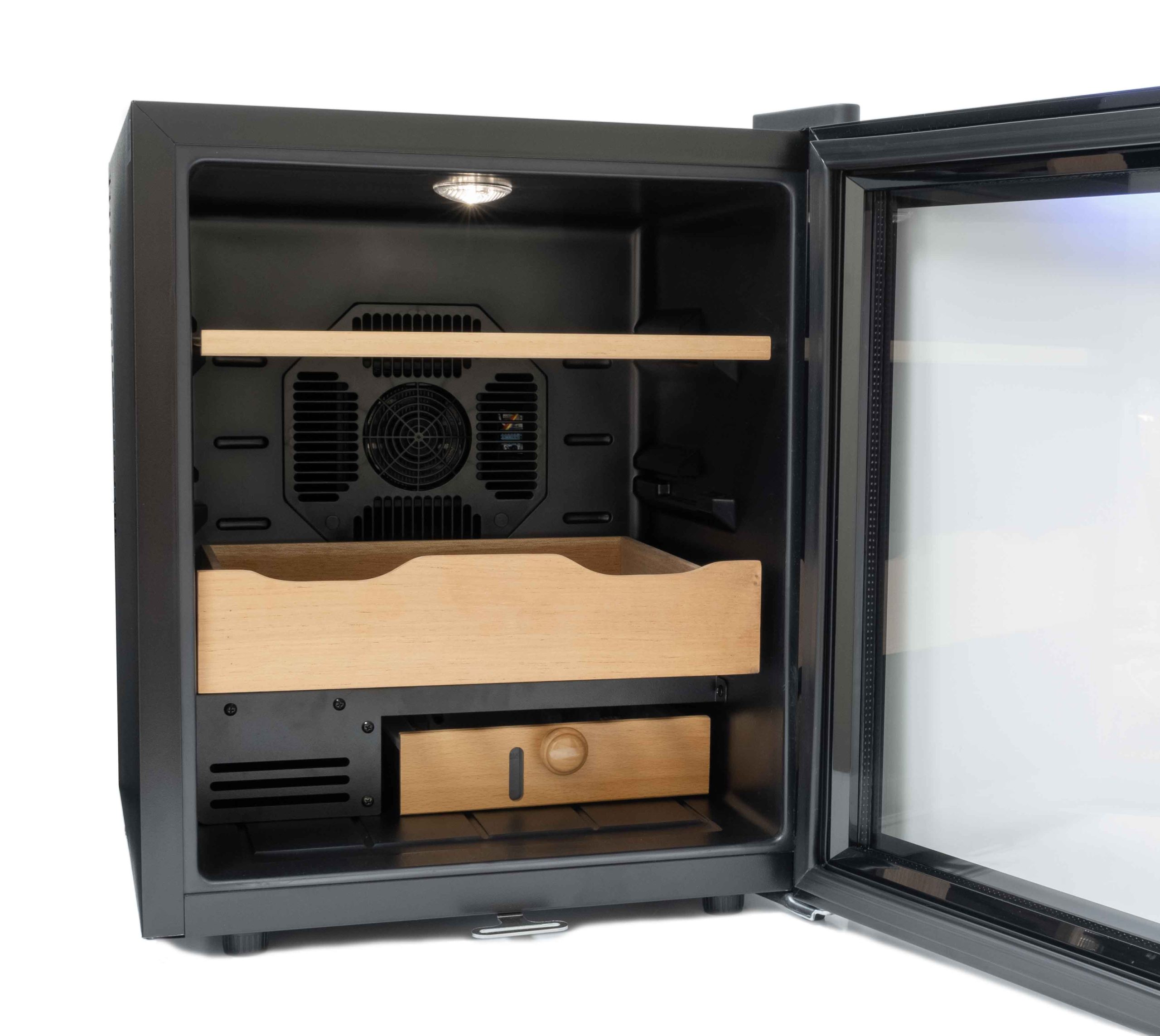Внутри шкафа автоматически поддерживаются заданные температура и влажность, оптимальные для сохранения качества и вкуса сигар в течение длительного времени.