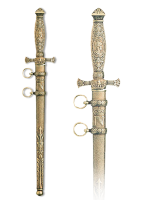 Эта модель выполнена из высококачественного металла, а богато украшенные, съёмные ножны акцентируют величие его прославленного владельца.