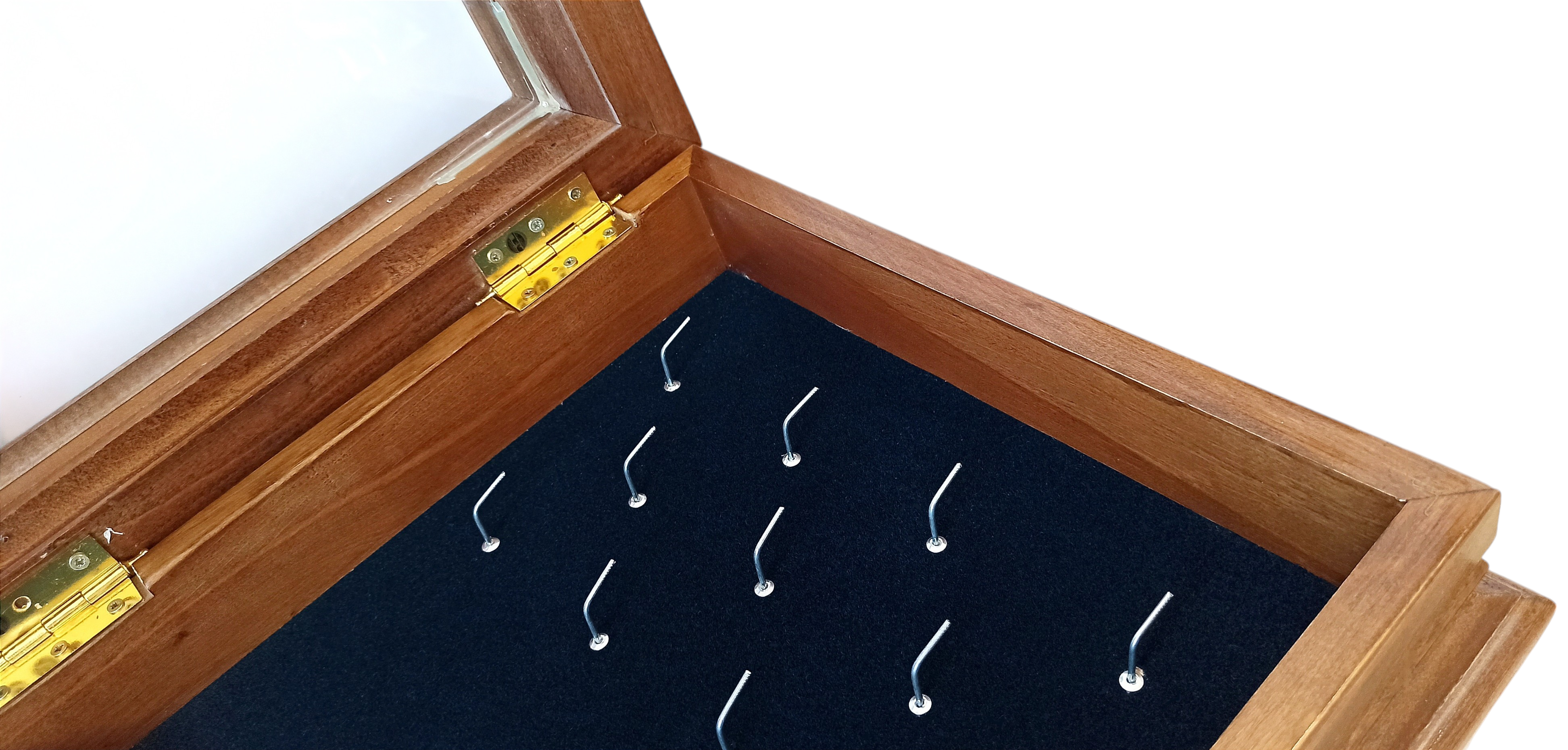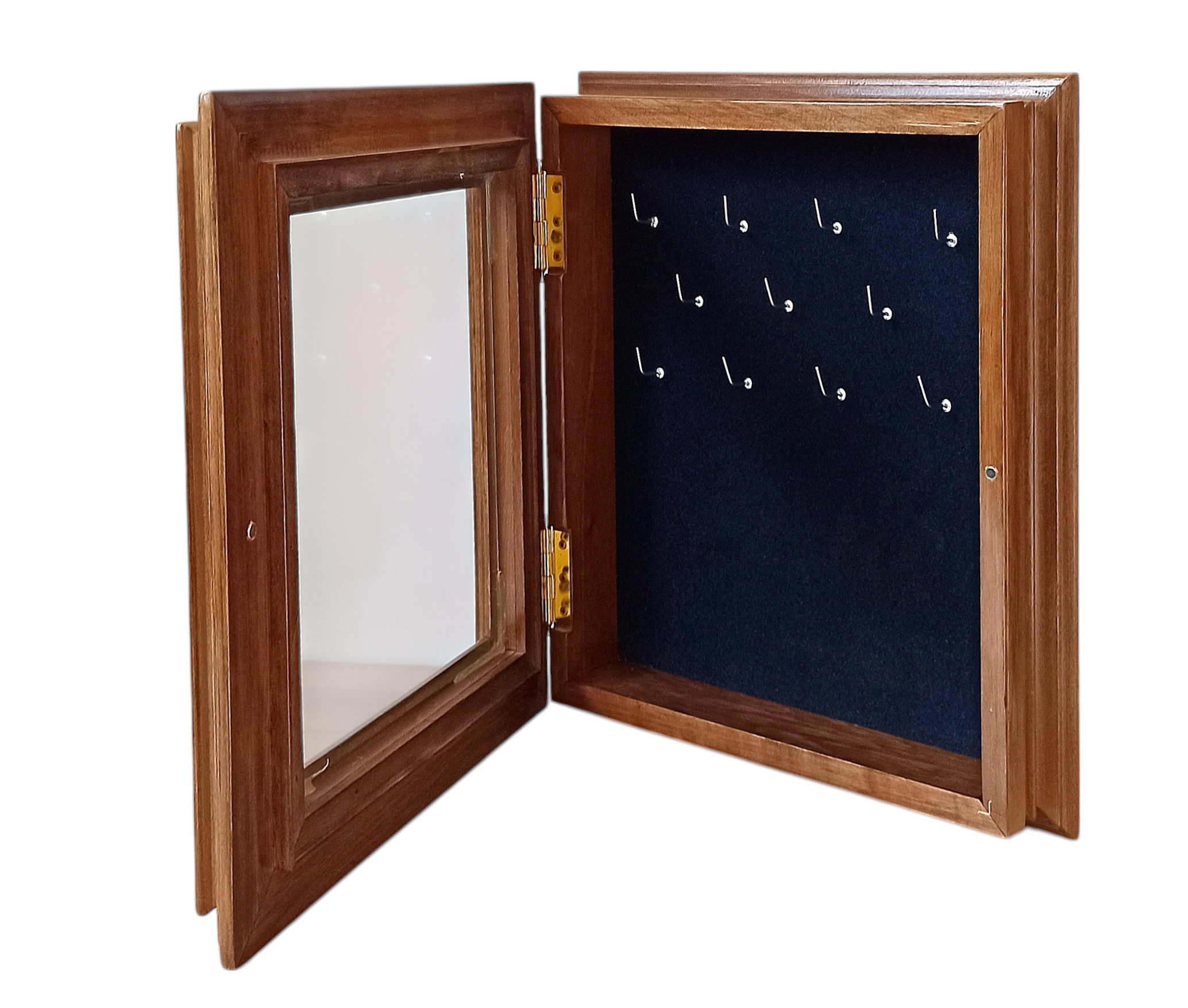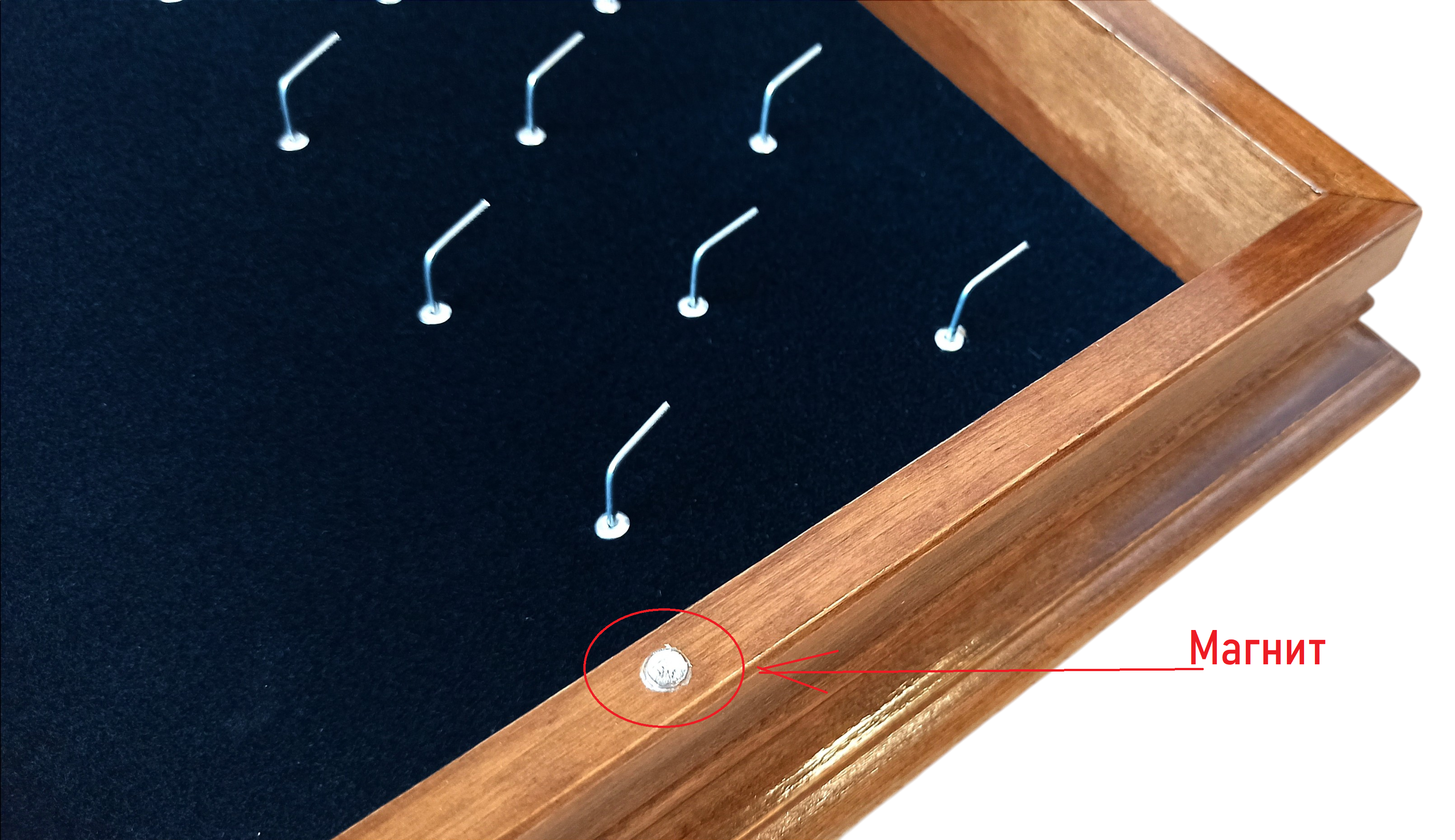 От посторонних глаз содержимое ключницы можно скрыть при помощи бархатной накладки-планшета черного цвета.