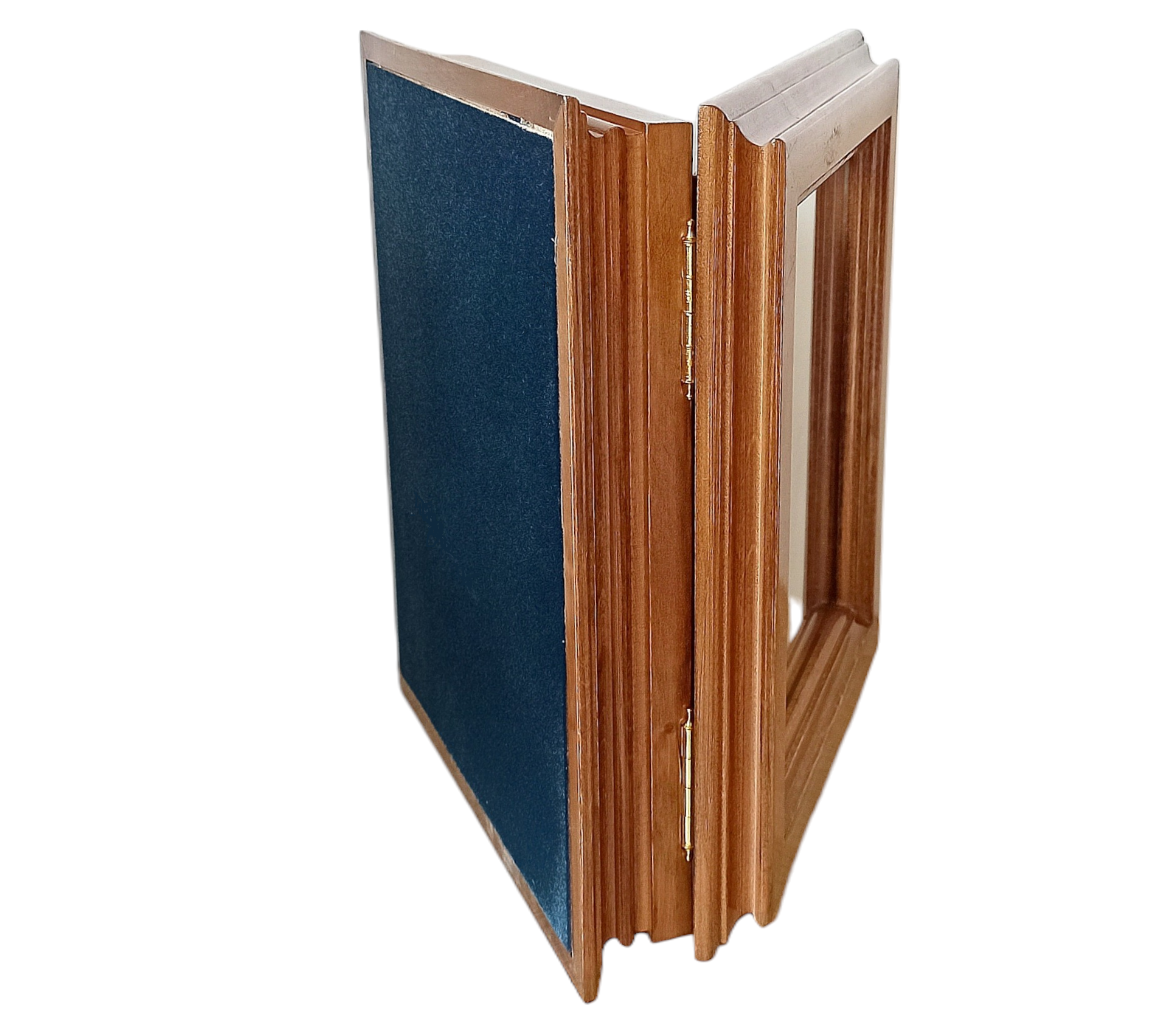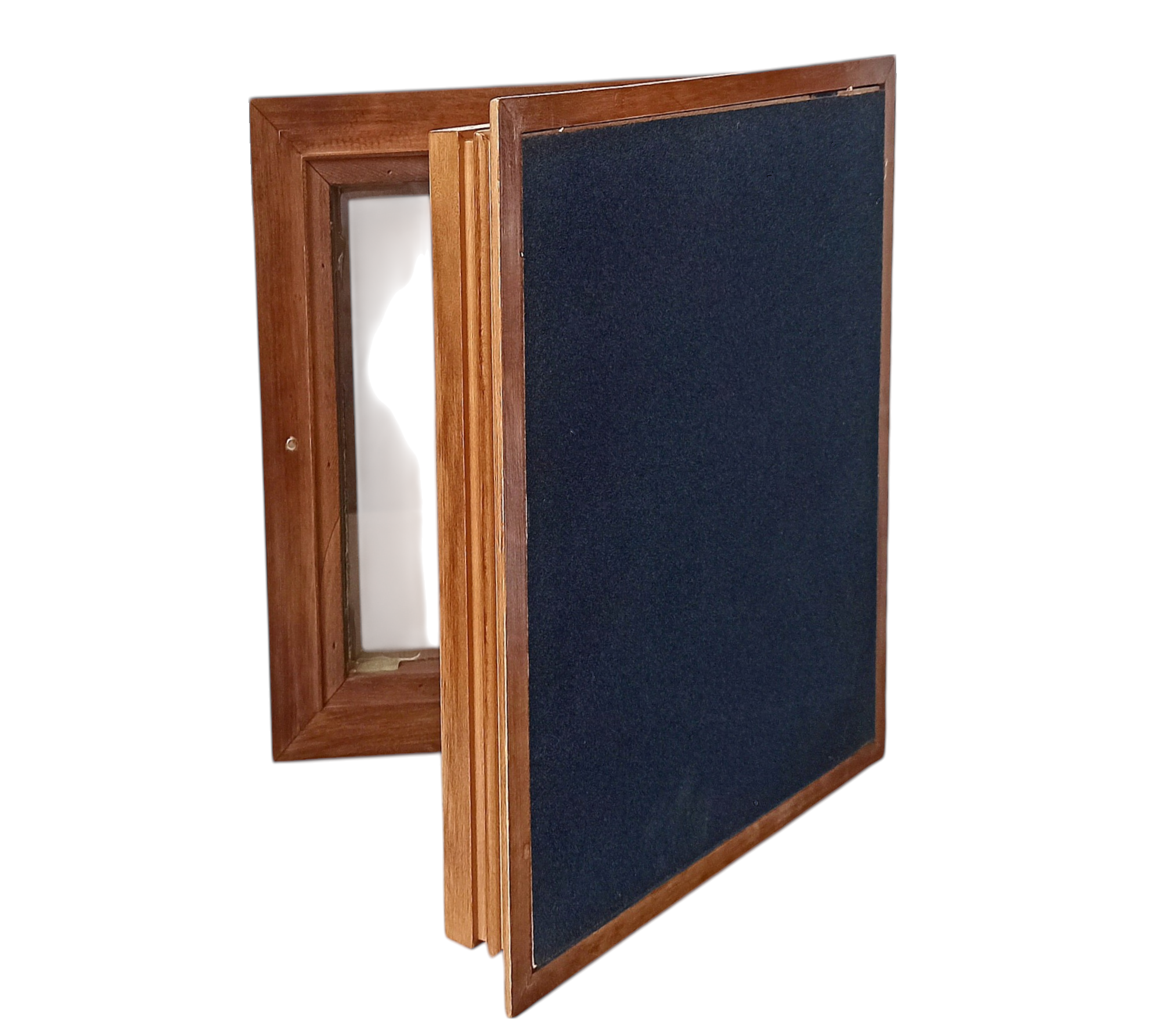 Паспарту и фронтальная часть ключницы отделана бархатом тёмно-синего цвета.