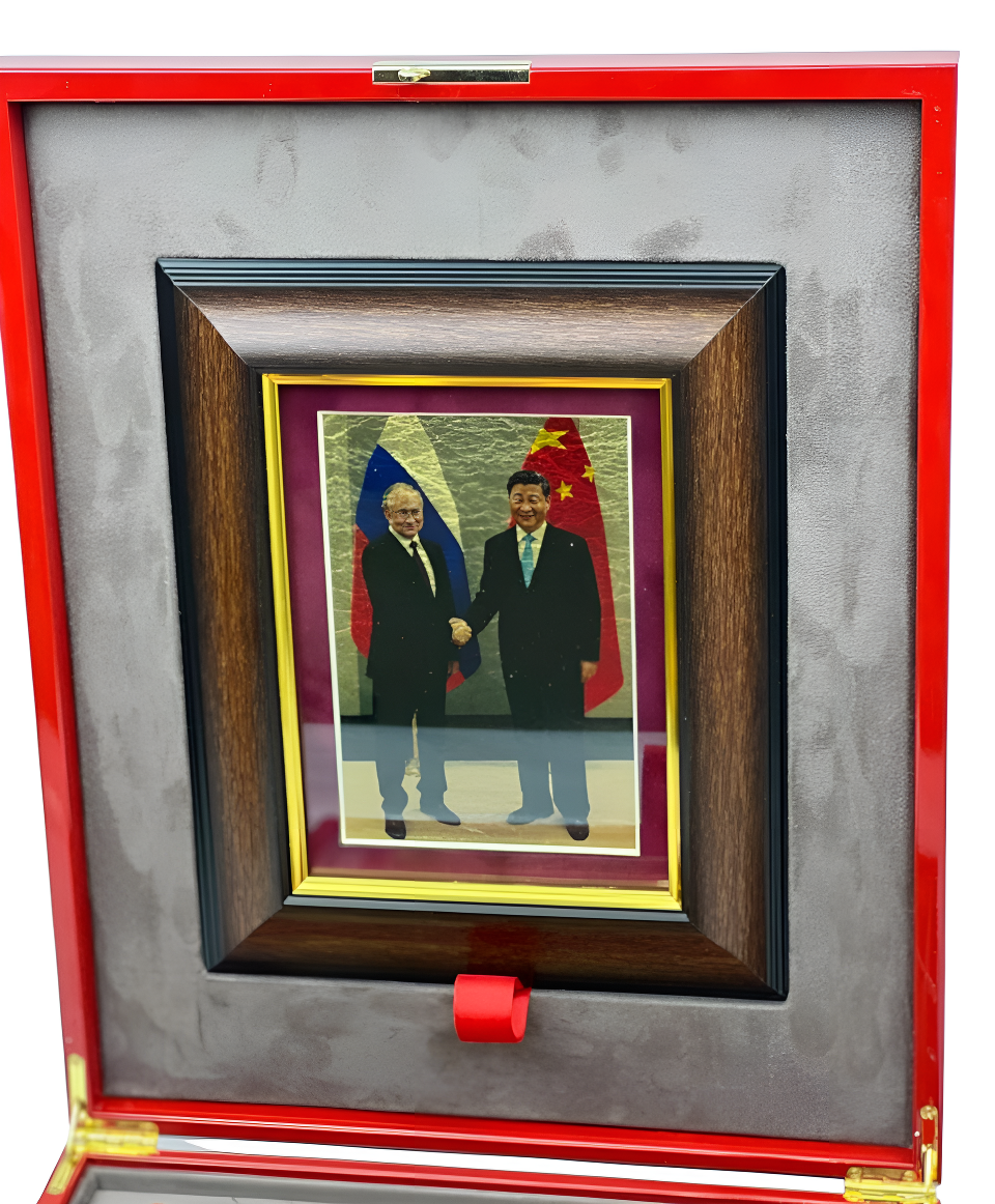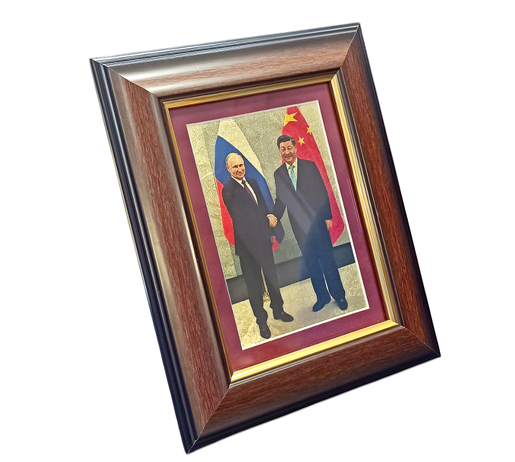 Картина (два варианта исполнения: Кремль/ главы государств РФ и КИТАЯ, уточняйте у менеджера) оформлена багетом с изображением из сусального золота 960 пробы. Имеется два варианта картины, уточняйте у менеджера