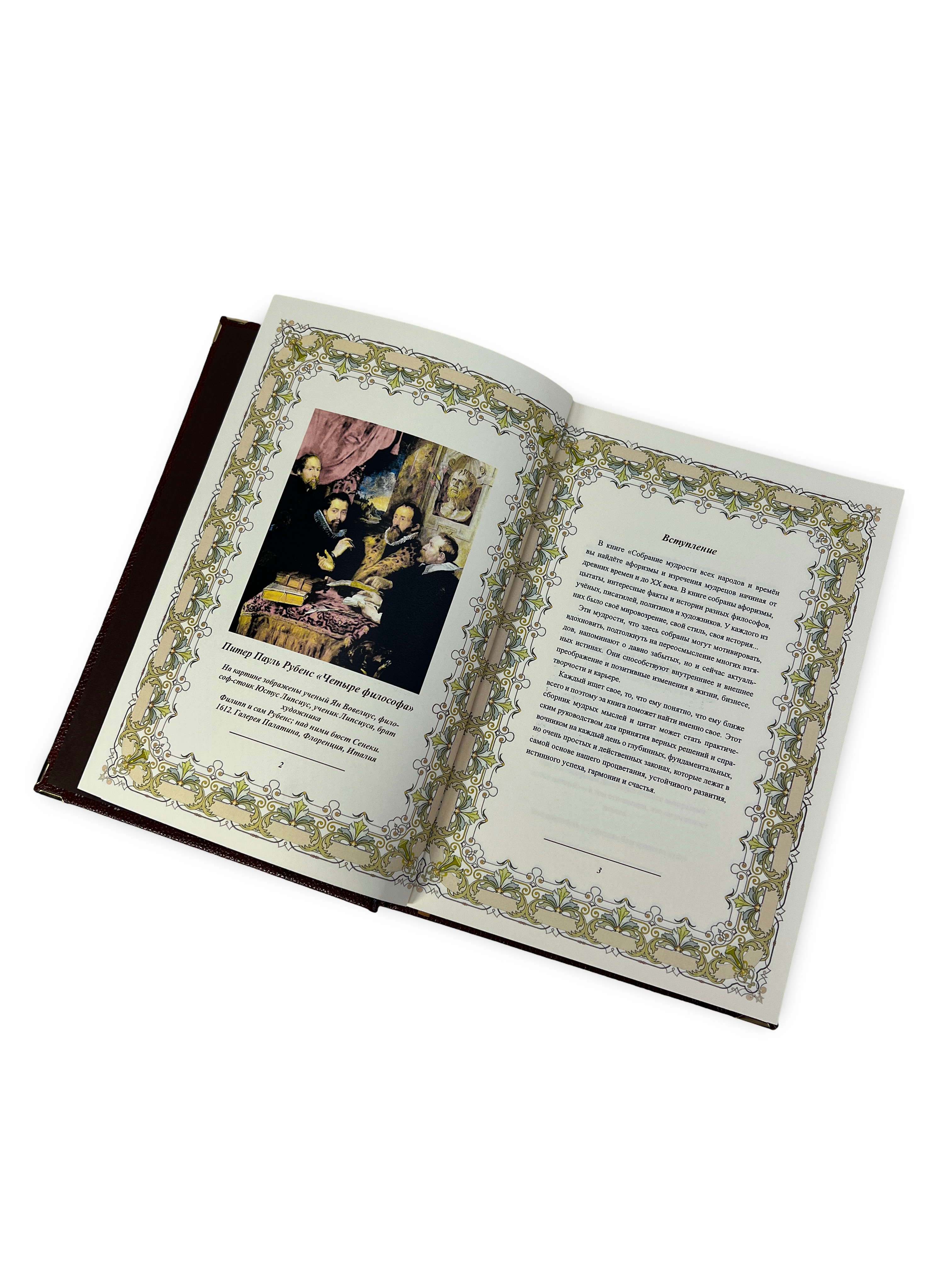 Подарочное издание «Собрание мудрости всех народов и времен» - это сборник афоризмов, философских мыслей, цитат, различных оригинальных изречений известных философов, мудрецов, ученых, писателей, мыслителей, руководителей, полководцев, историков и многих других.В книге содержатся не только самые известные афоризмы и высказывания, но интересные факты о жизни и краткая биография их авторов.