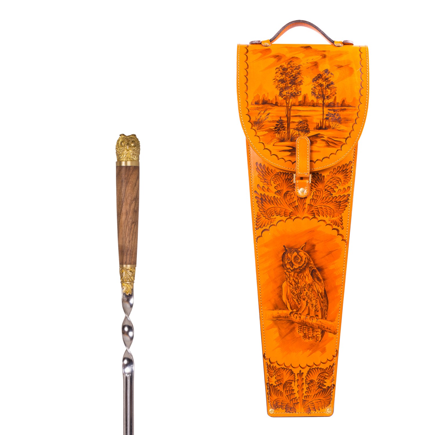 Шампур с рукоятью из ореха и латуни в виде головы совы (общая длина шампура — 69 см: длина полотна — 54 см, длина рукояти — 15 см) | 6шт. |