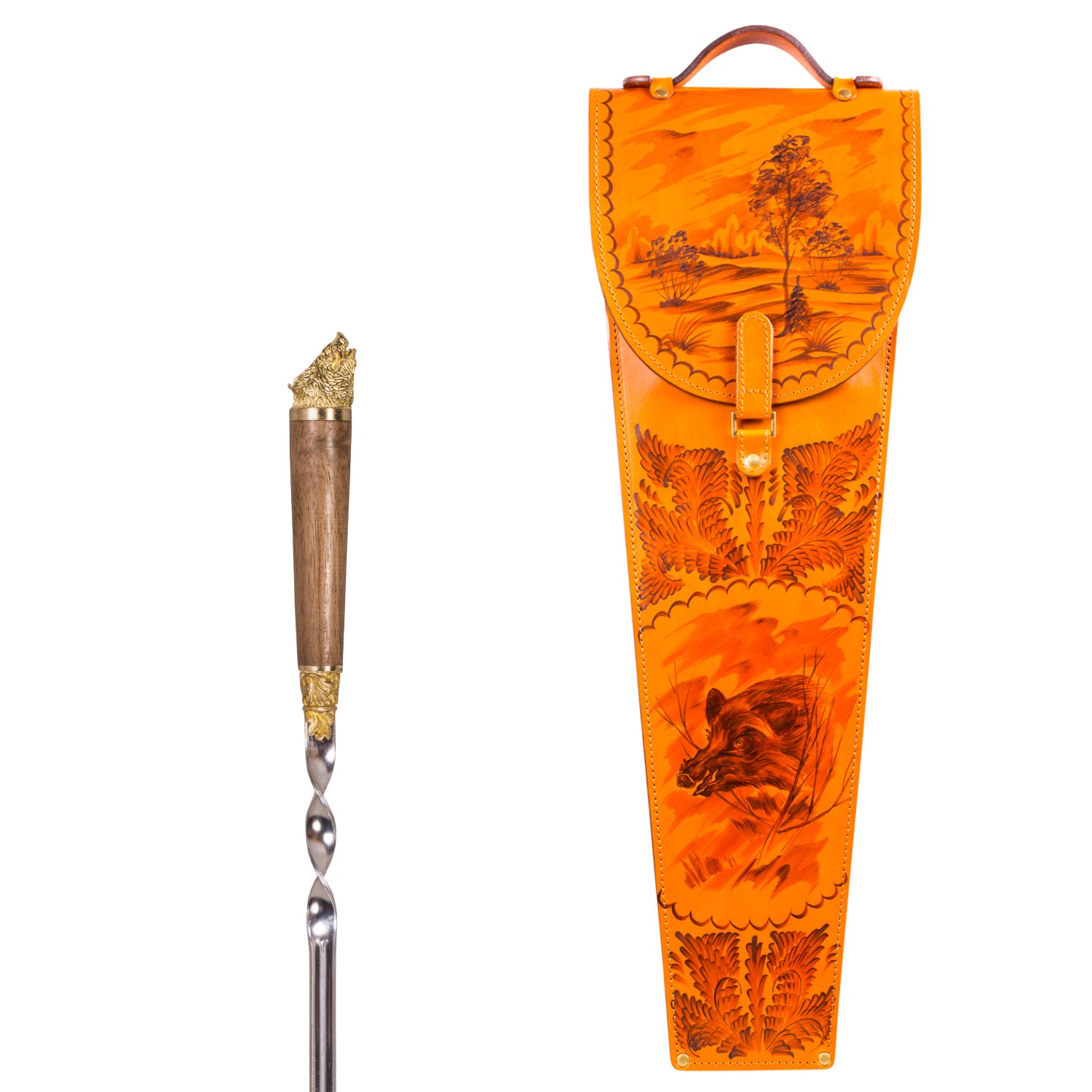 Шампура подарочные «Кабан» 6шт. в колчане из натуральной кожи (роспись), арт.307КК6