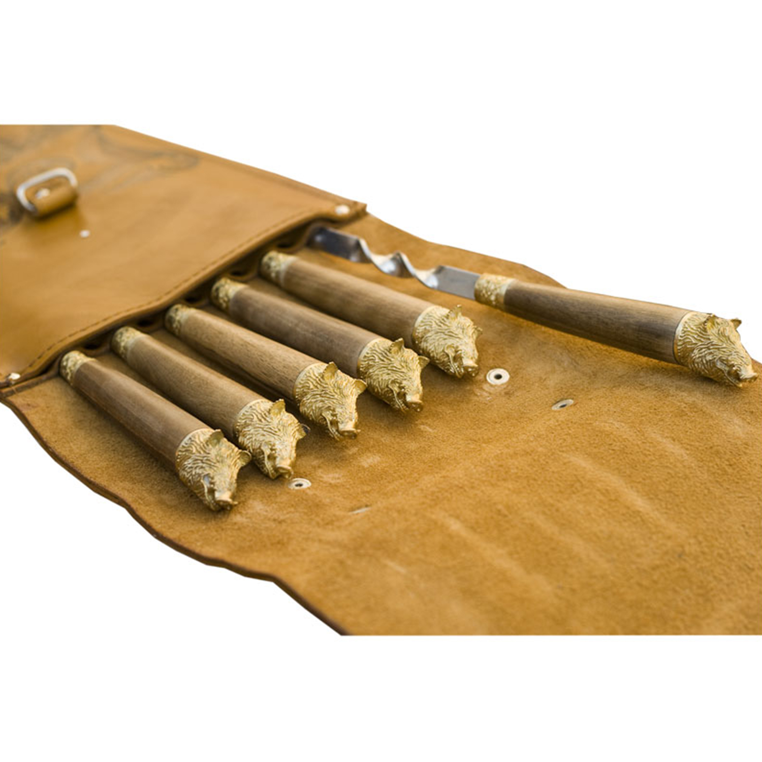 Шампур с рукоятью из ореха и латуни в виде головы кабана (общая длина шампура — 69 см: длина полотна — 54 см, длина рукояти — 15 см) | 6шт. |