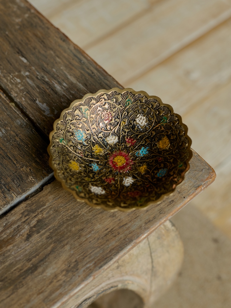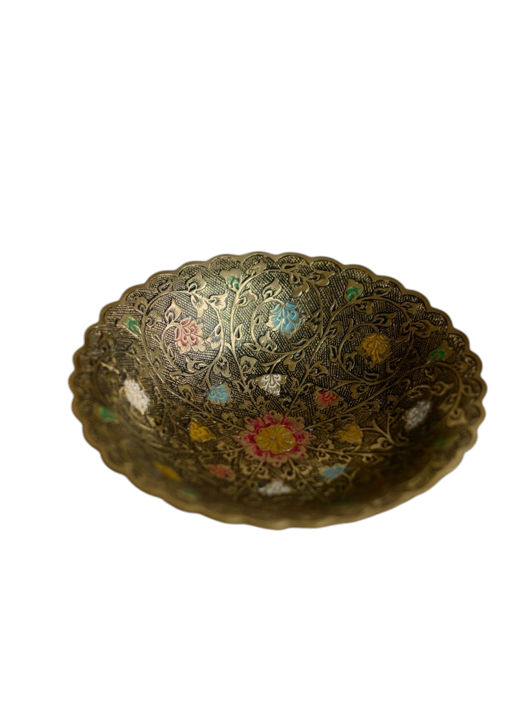 Конфетница латунь резная тёмная цветная эмаль 4,75'