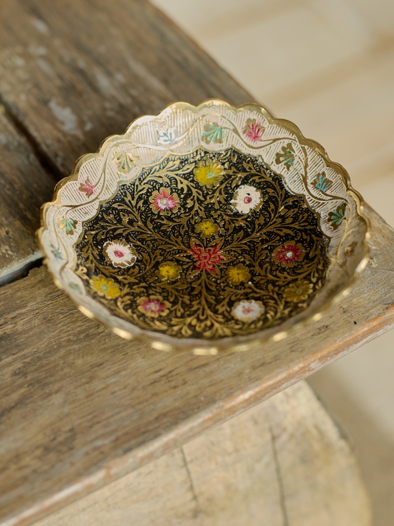 Конфетница, латунь, тёмная цветная эмаль, 12 см