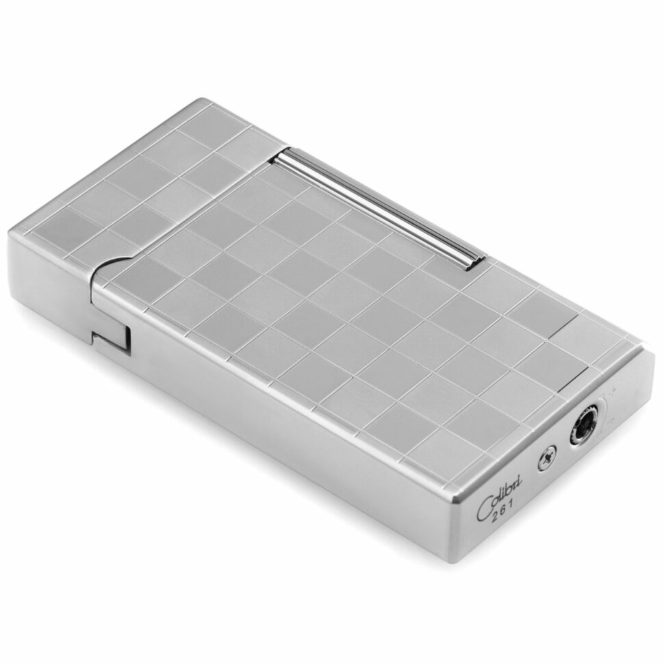 Зажигалка газовая Colibri Wellington Silver Basket Weave с обычным пламенем, сделана из металла.