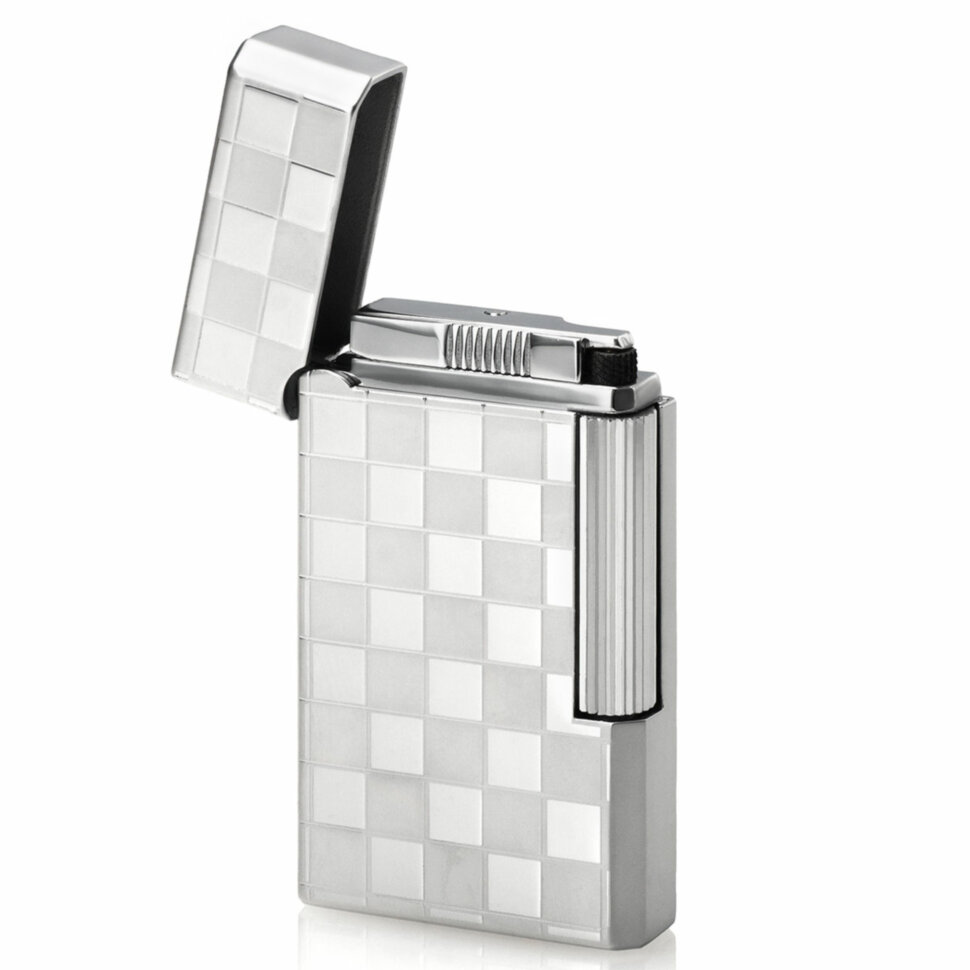 Цвет зажигалки серебро, гравировка в виде шахматной доски из полированного и матового серебра.