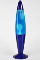 Настольная лавовая лампа средних размеров, высотой 41см с белым воском в синей жидкостью.