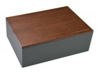 Шкатулка для хранения часов из коллекции Stackers. Шкатулка изготовлена из экокожи темно-серого цвета с деревянной крышкой. Внутренняя отделка выполнена из хлопковой ткани серого цвета. Шесть отделений с подушками для хранения восьми часов.