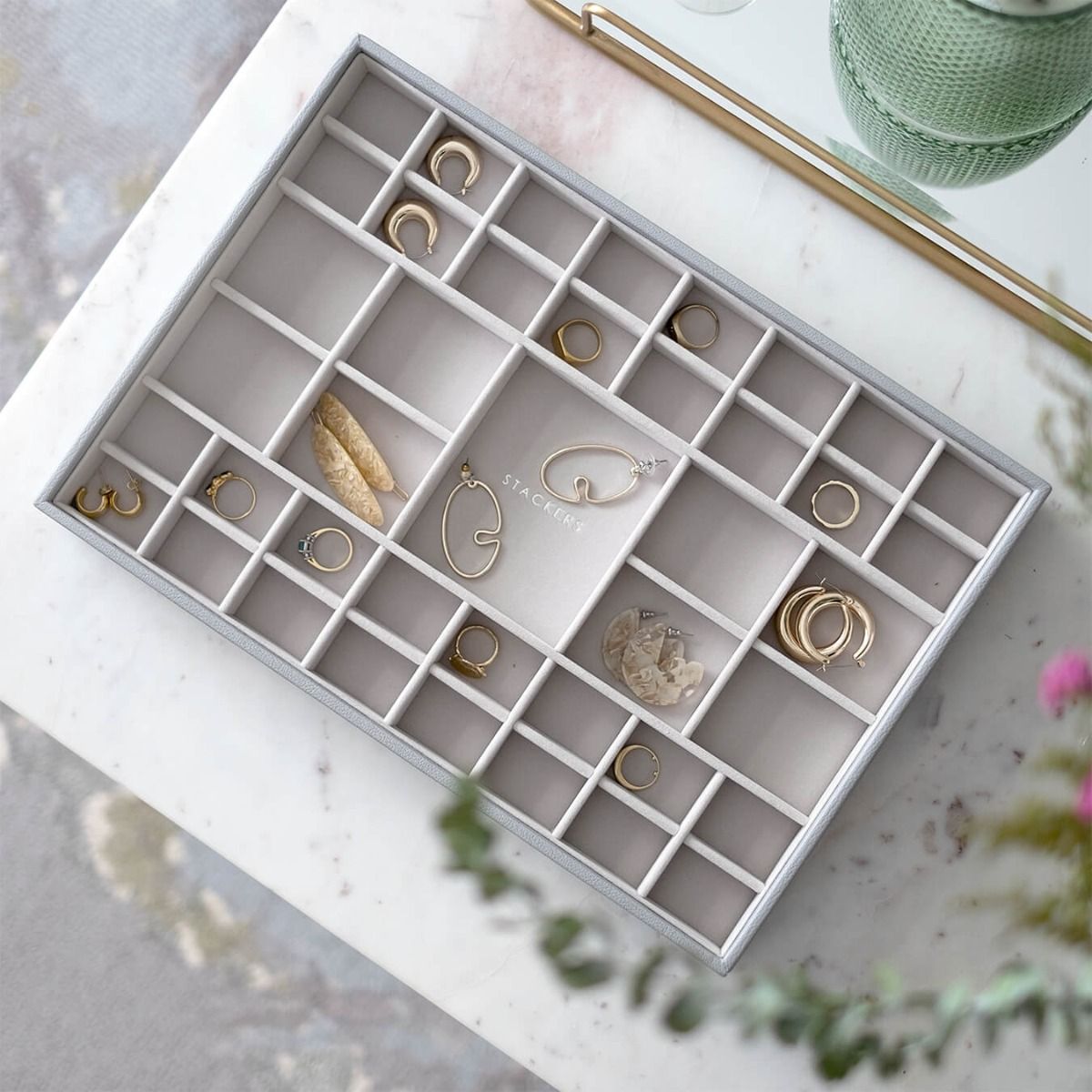 Также в ассортименте Stackers есть мужские шкатулки , а также, запатентованные лотки и органайзеры для хранения украшений в столах и комодах.