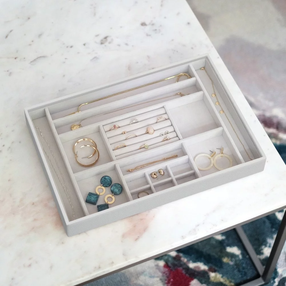 Открытый лоток для украшений можно разместить в ящике стола либо на самом столе.