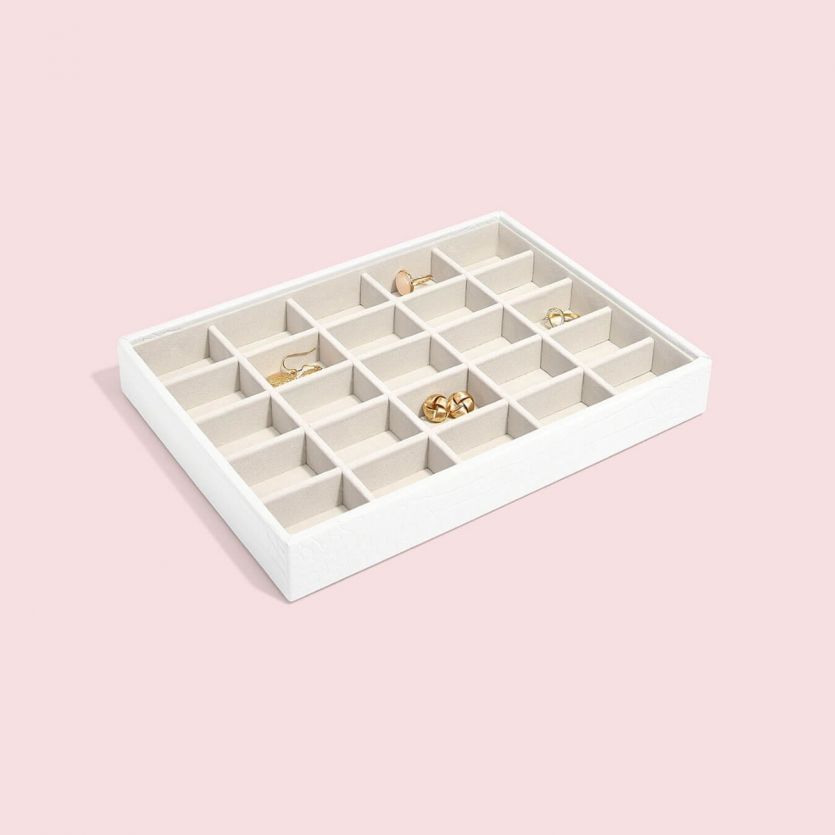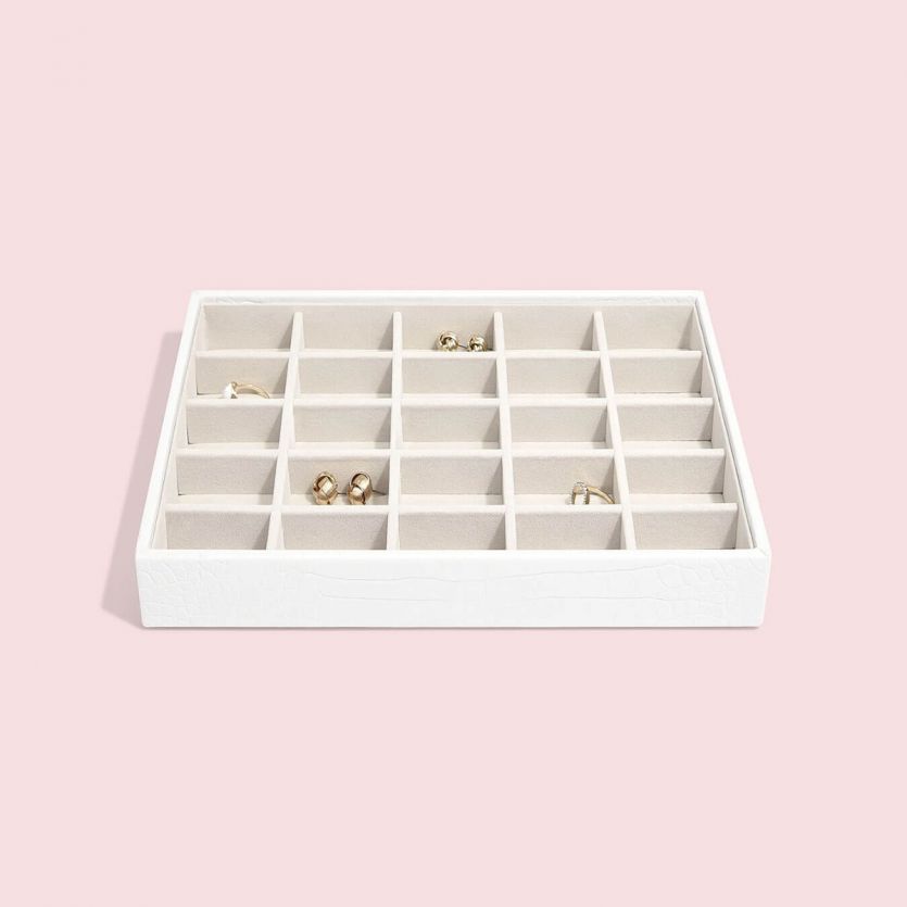 Открытый лоток для хранения украшений из новой коллекции Stackers CHALK WHITE CROC CLASSIC от британской компании LC Designs.