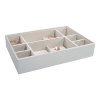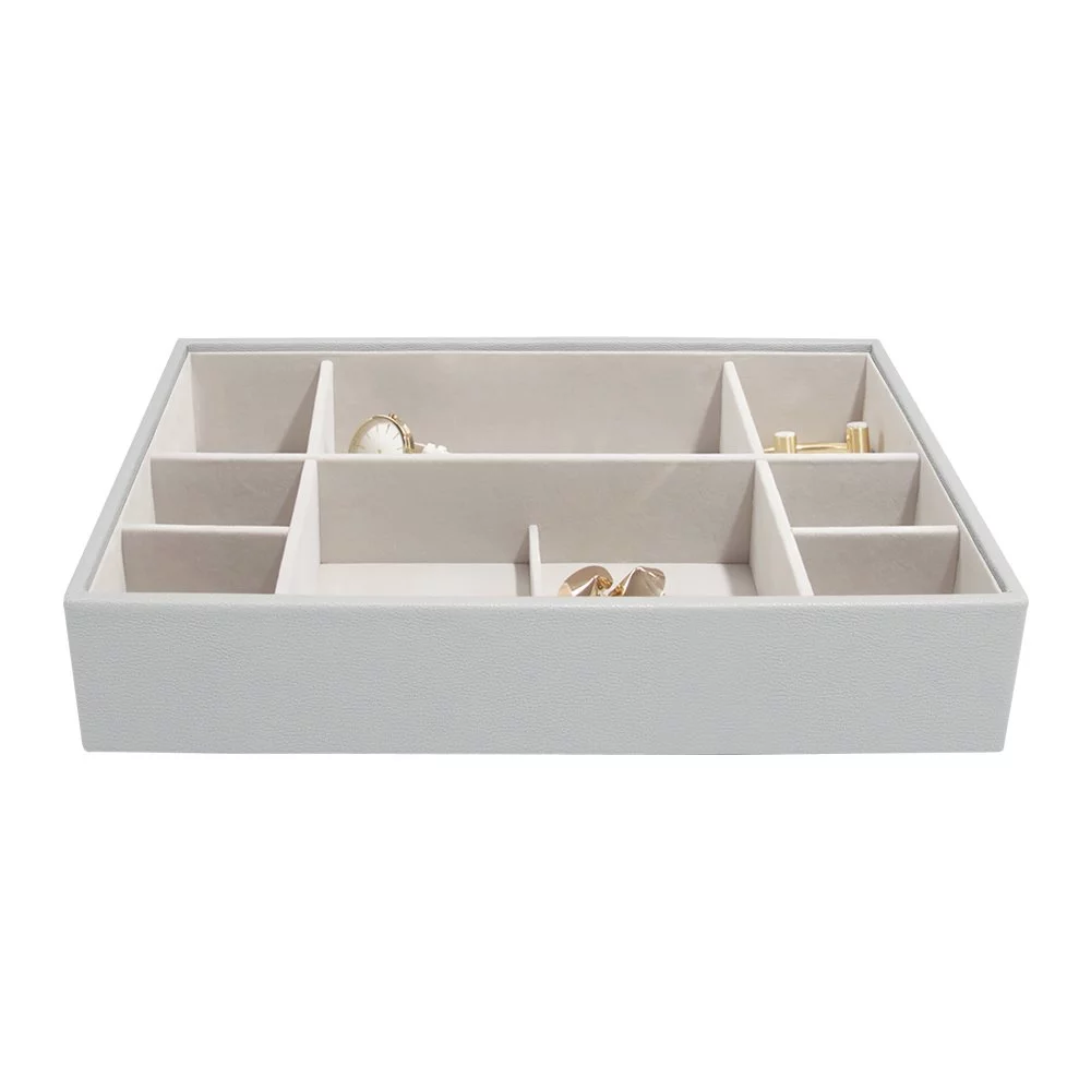 Глубокий большой (XL"- 36,6x25 см) лоток для хранения украшений Stackers от английской марки LC Designs выполнен из высококачественной зернистой экокожи светло-серого цвета.