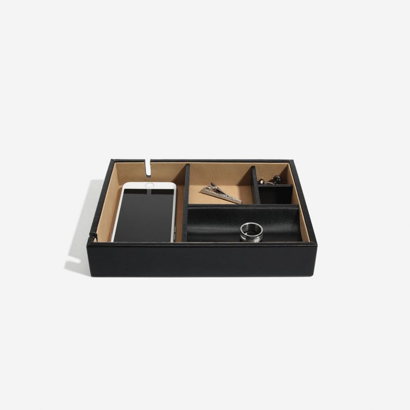 Стильный лоток из испанской натуральной кожи черного цвета коллекции Dulwich для хранения аксессуаров.
