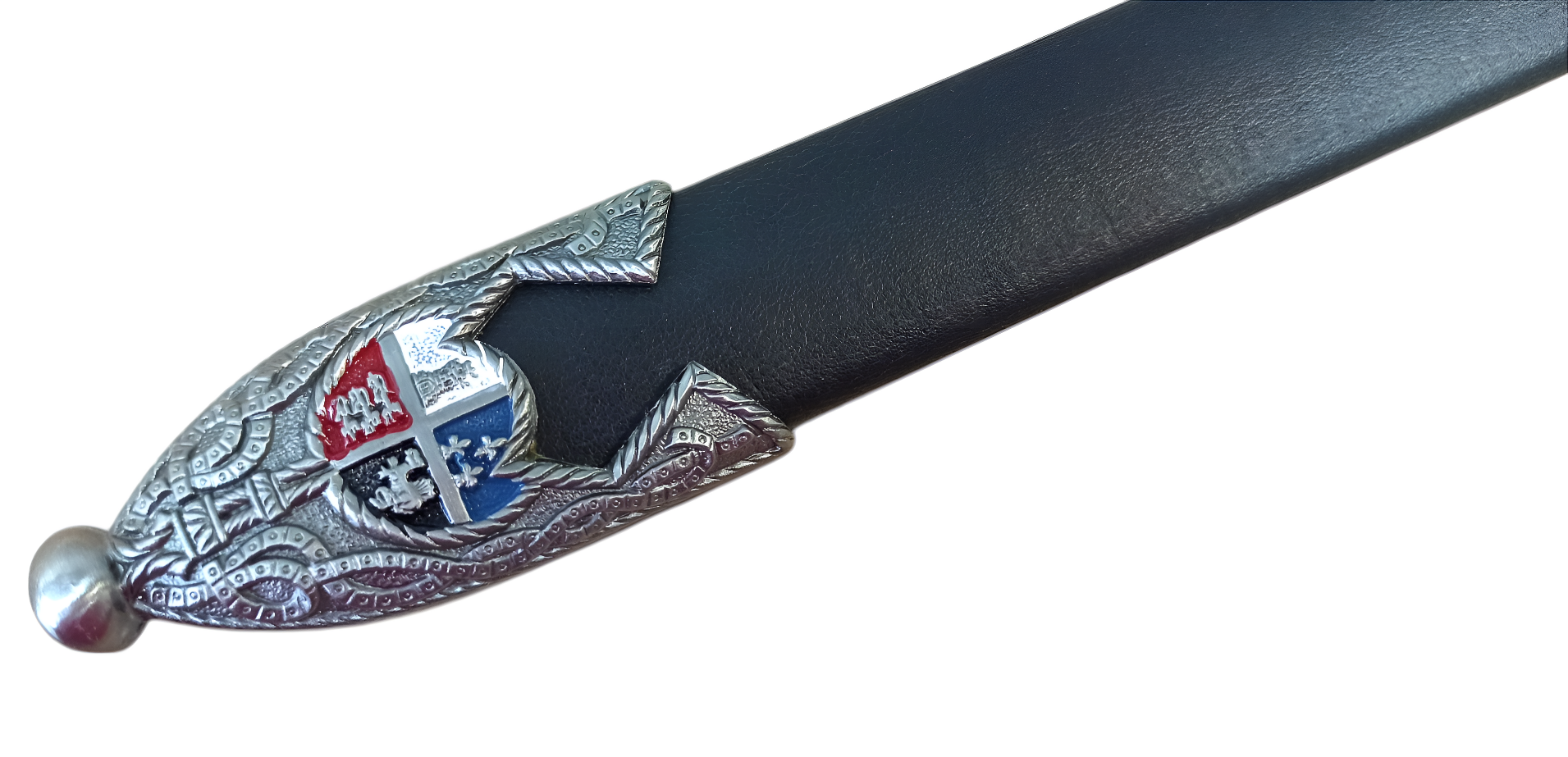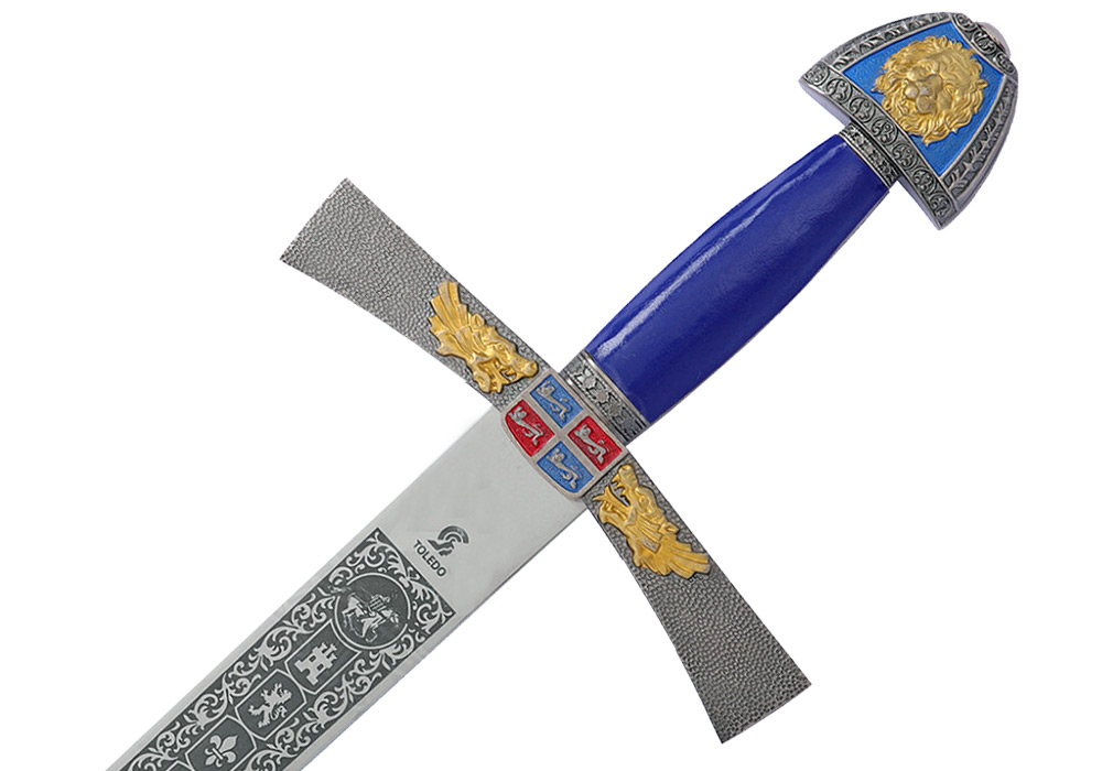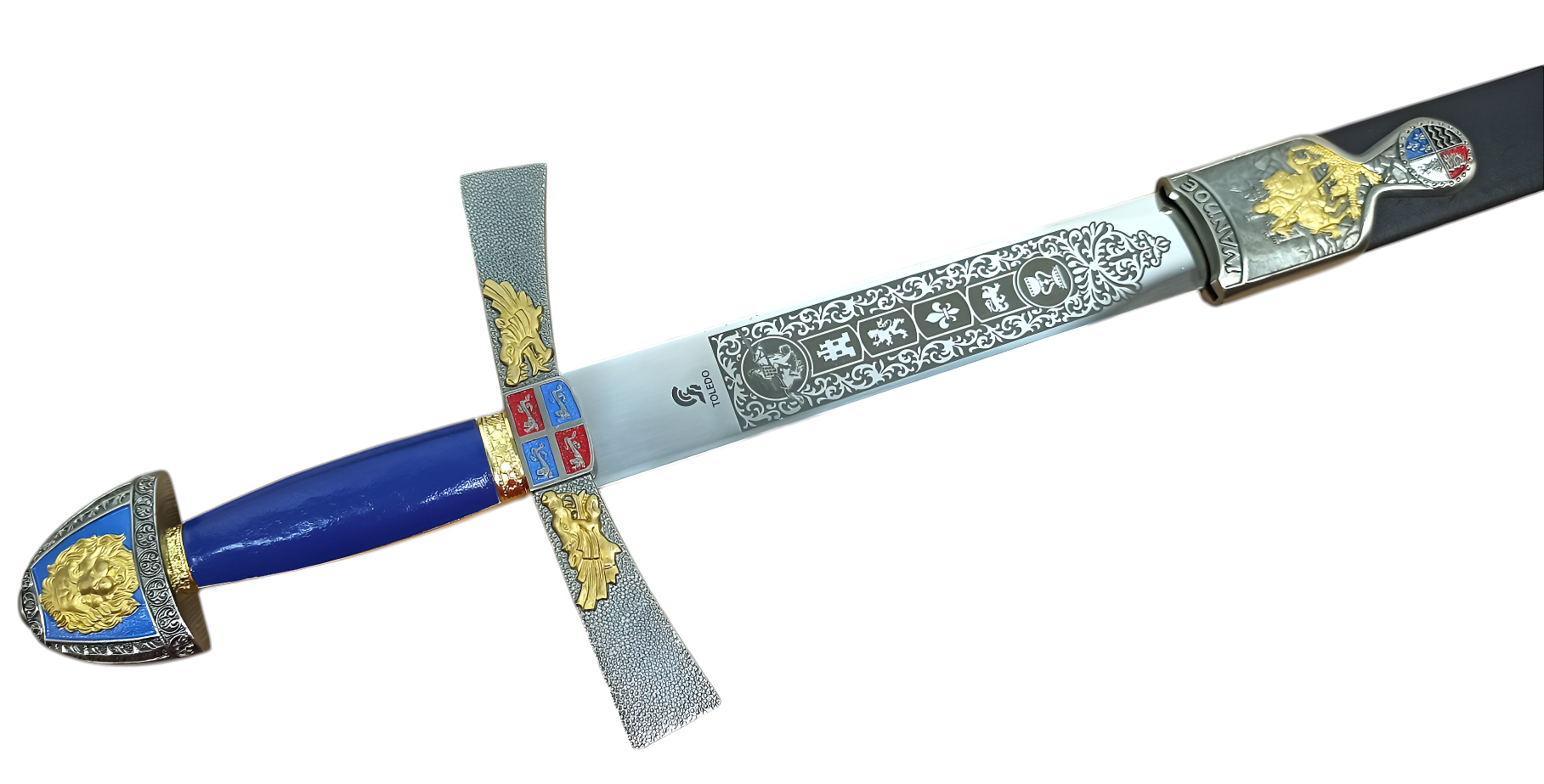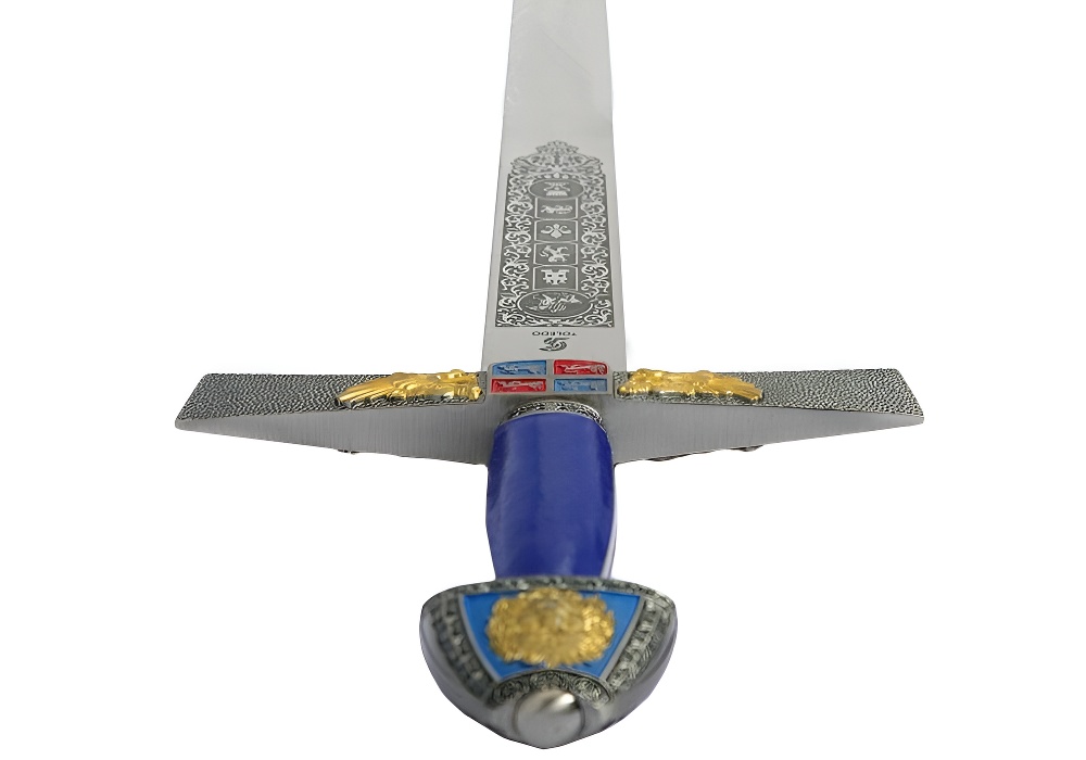 Тупой клинок из нержавеющей стали, украшенный геральдическим орнаментом, предназначен только для демонстрации, но не умаляет величия этого меча.
