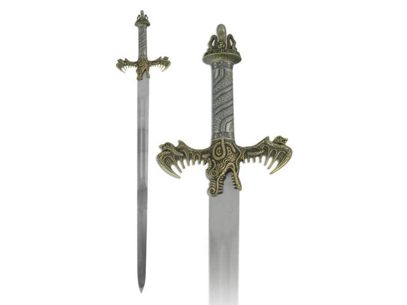 Представляем вам великолепный меч Конана Варвара, выполненный в серебристо-золотой отделке с ножнами, который является воплощением силы древних воинов, наводящих ужас на поле сражения.