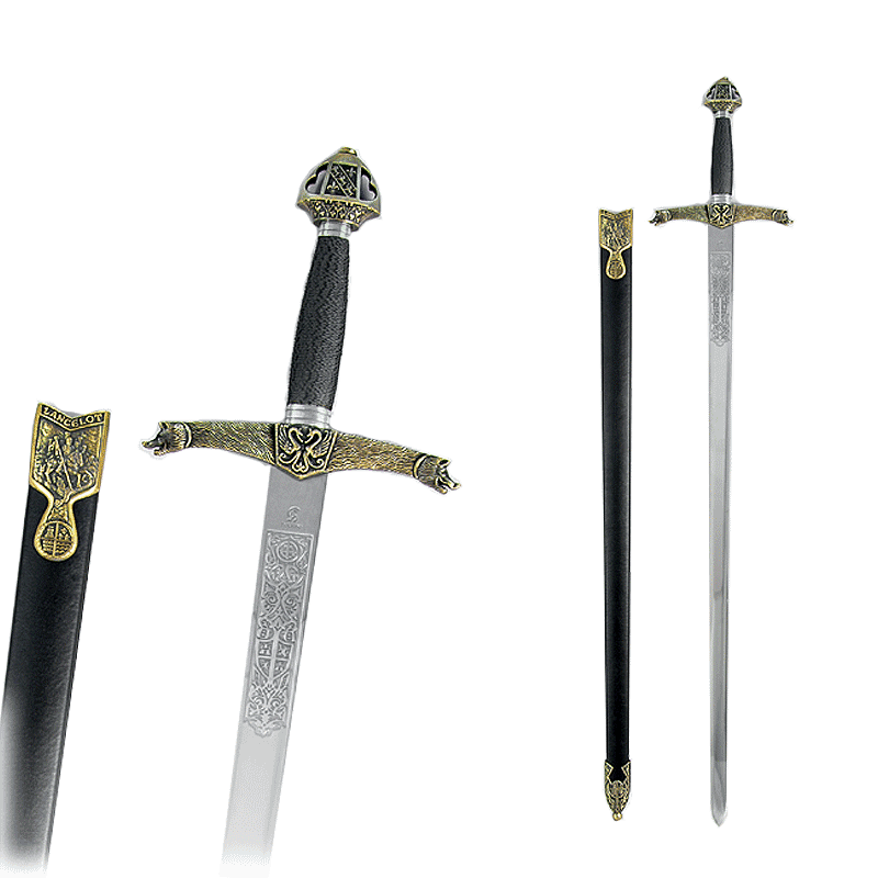 Меч Ланселота имеет очень детализированную эфес: текстурированная гарда с мотивом геральдического дракона в центре, концы гарды сделаны в виде головы кабана, навершие украшает Флёр-де-Лис (геральдическая лилия) и геральдические львы. Лезвие изготовлено из нержавеющей стали с высокотехнологичной обработкой (полировкой) и не заточено. На лезвии выгравированы геральдические мотивы.