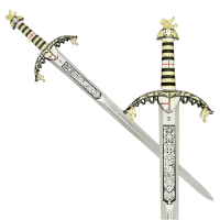 Лезвие изготовлено из нержавеющей стали и не заточено, имеет блестящую зеркальную полировку и выгравированные на черном фоне геральдические узоры (герб Ричарда - 3 Английских Льва, крест Тамплиеров и сцена коронации из средневековых свитков).