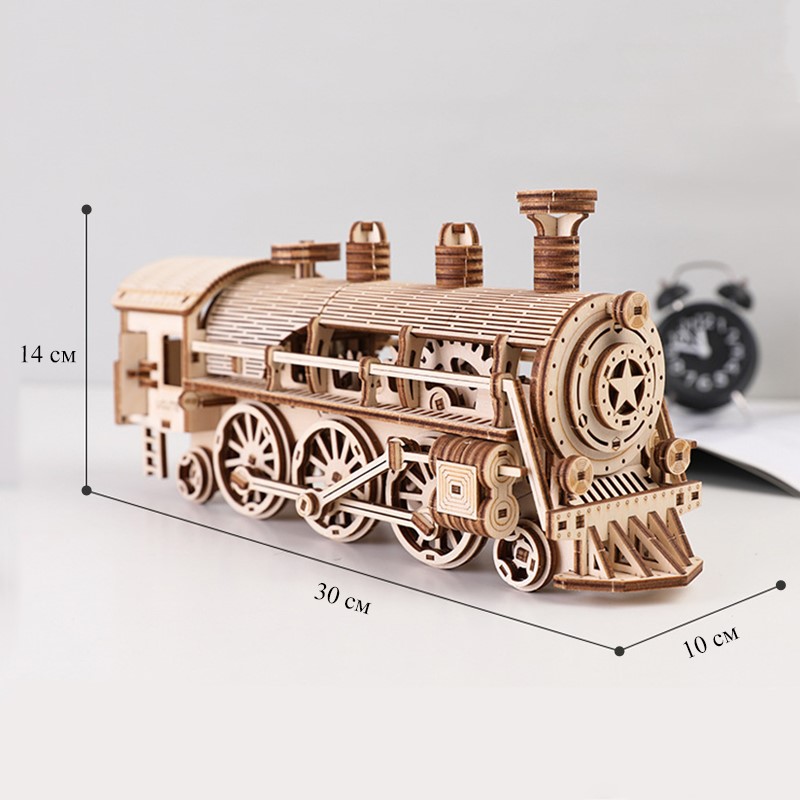 Конструктор Паровоз - это сборная модель с заводным механизмом. После приведения модели в движение, можно наблюдать за работой шестеренок механизма.