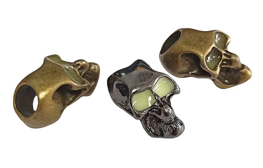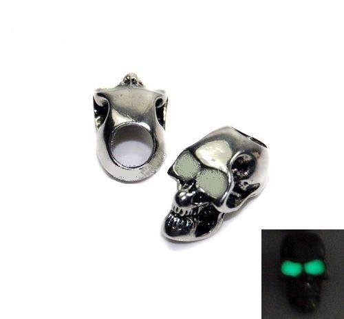 Металлический череп для темляка из паракорда, со светящимися глазницами.