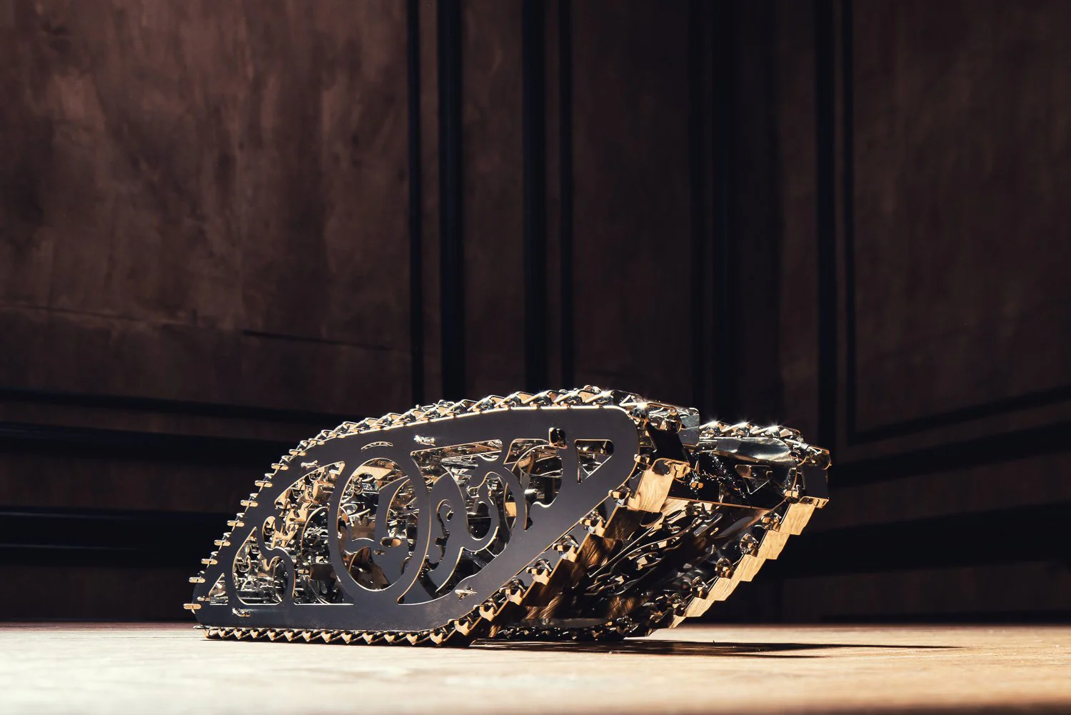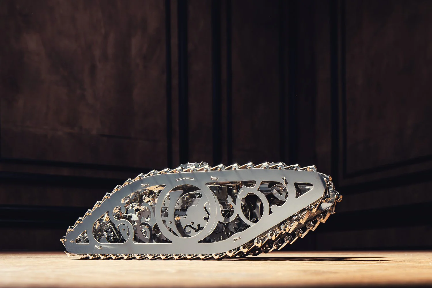 Изготовлено из высококачественной полированной нержавеющей стали — материала с прекрасными техническими и декоративными характеристиками (детали не окисляются, не тускнеют, прекрасно держат форму и абсолютно подходят друг к другу). А благодаря изготовлению методом химического травления, запчасти имеют сглаженные грани.