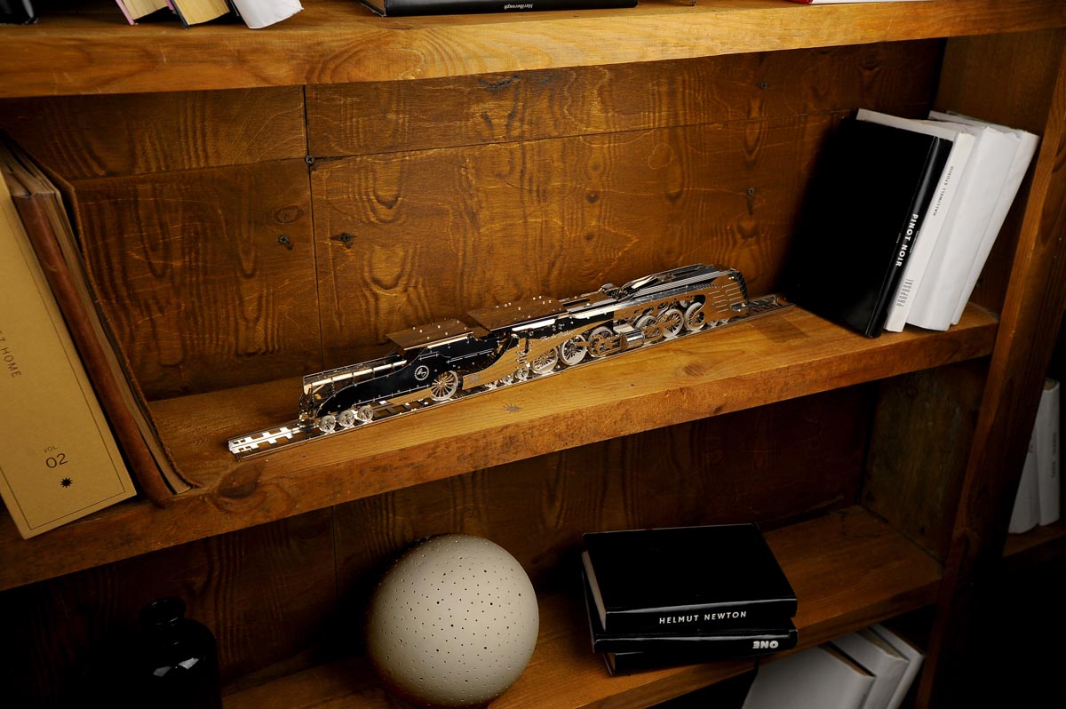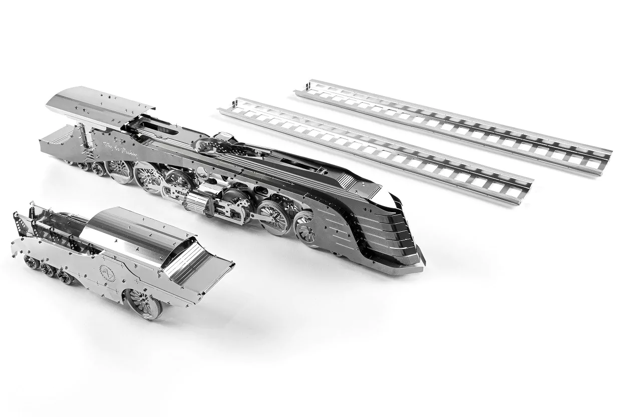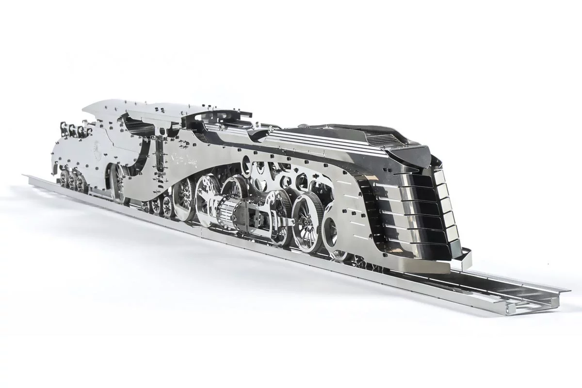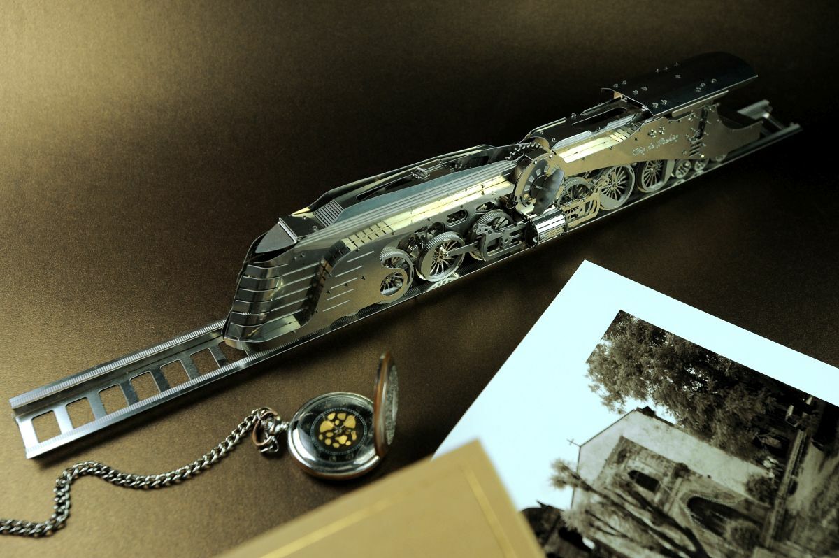 Аэродинамический паровоз с тендером (Dazzling Steamliner) — это гладкая, аэродинамическая металлическая модель, вдохновленная дизельпанком, стимпанком и историческим дизайном. Он может украсить любое пространство: от вашего кабинета и гостиной, до официального корпоративного офиса.